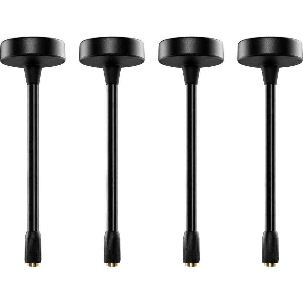 Use this 6G Flexible "Mushroom" H Antenna Kit four-pack from Teradek with your Bolt 6 wireless transmitter or receiver to transmit and receive over the 6 GHz frequency band, supporting a 4.9 to 7.3 GHz range. The 2 dBi RP-SMA antenna features a flexible rubberized housing and the mushroom H style allows for a stronger connection.