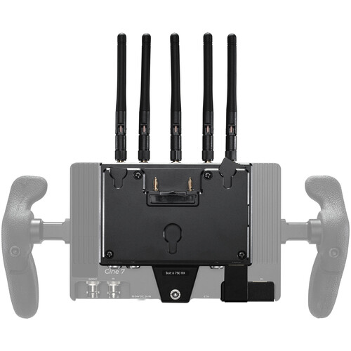 Receive lossless HD video from up to 750' line-of-sight with the Bolt 6 RX 750 Monitor Module from Teradek. The module mounts onto the back of a SmallHD Cine 7, Indie 7, or 702 Touch monitor and can wirelessly receive up to 4K30 video with 10-bit 4:2:2 HDR support and outputs video via one HDMI port. A Gold mount battery plate is included to power the receiver using a professional Gold mount battery. Though it can transmit visually lossless video to any Bolt 4K series receiver with zero delay using the 5 GHz band, it requires a Bolt 6 device to transmit over the 6 GHz band.