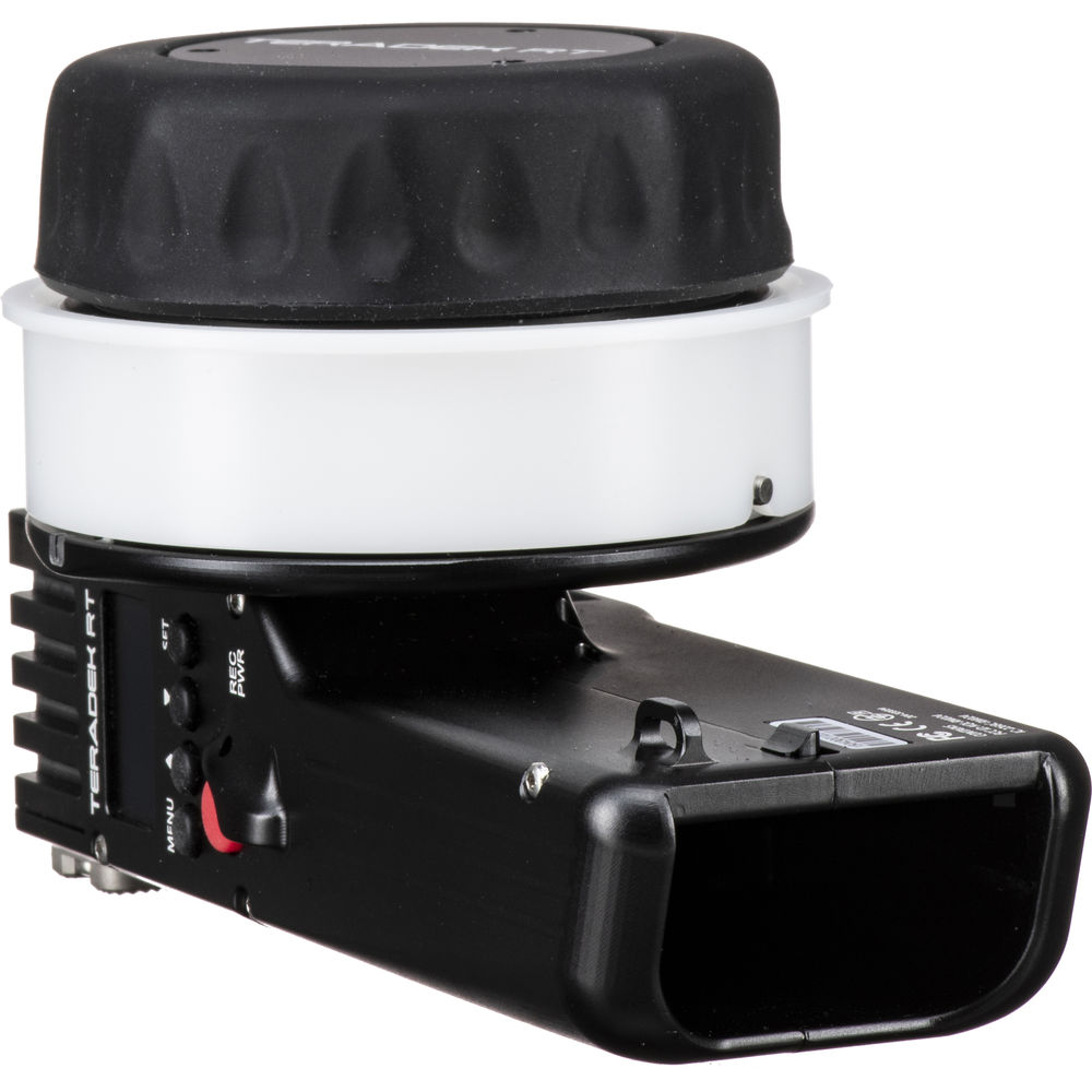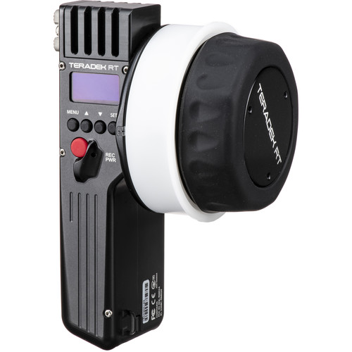 For precise lens control with your Teradek RT motors and receivers, the Teradek RT CTRL.1 Single-Axis Wireless Lens Controller can control focus, iris, or zoom with ease. The CTRL.1 has a wireless range of 5000' so you can control your lens functions when up on a crane or down the block, or you can use an optional 5-pin motor controller cable to connect directly to a motor.