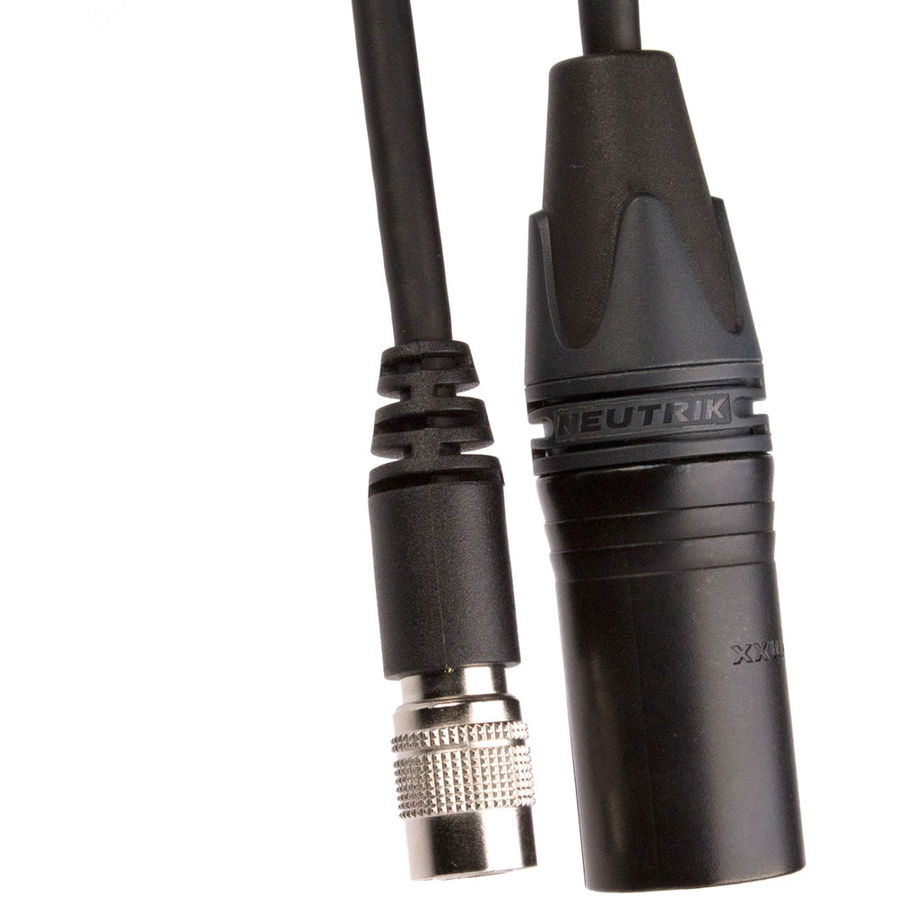 This 24" RT MK3.1 4-Pin XLR Power Cable from Teradek connects power from a battery or plate with a 4-pin XLR port to the MK3.1 receiver. This cable is designed with a 4-pin Hirose connector on one end, and a 4-pin XLR connector on the other.