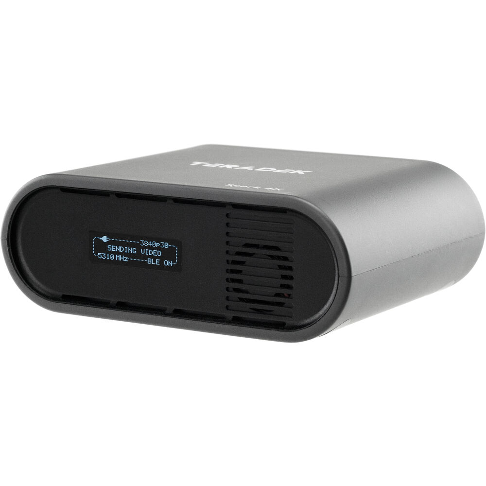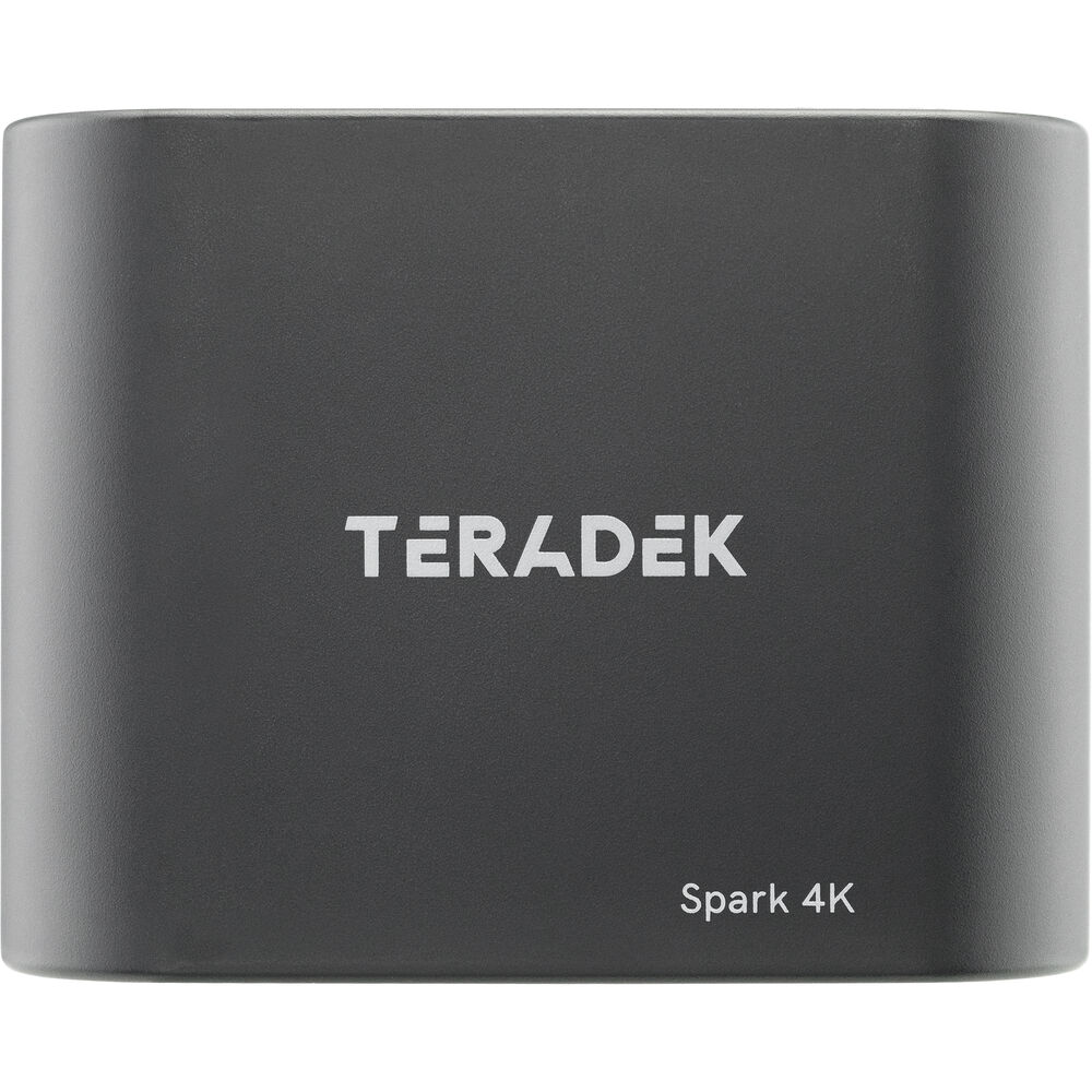 Transmit lossless HD video up to 500' to monitor video wirelessly using the Spark 4K Transmitter from Teradek. The Spark 4K transmitter can input up to 4K30 10-bit 4:2:2 HDR video via HDMI and transmit visually lossless video to up to two Spark 4K receivers with zero delay. The transmitter unit provides a powerful signal that can travel up to 500' line of sight and features a bright OLED display to view the unit status.