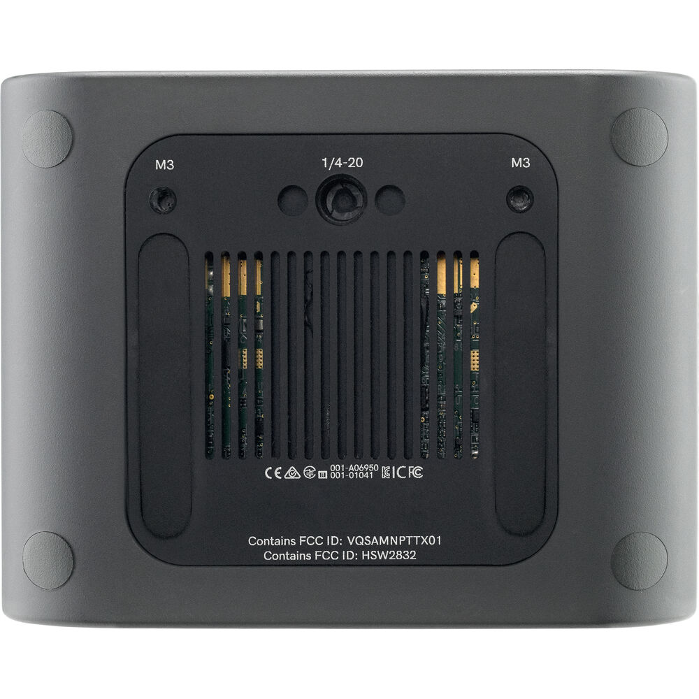 The Teradek Launchpad app for iOS or Android that easily connects to the transmitter via Bluetooth, which provides channel-selection tools, monitoring, and remote configuration. There are 1/4"-20 and M3 mounting threads to mount your transmitter on a variety of cameras, cages, or rigs. It's powered using a separately available USB Type-C power source.