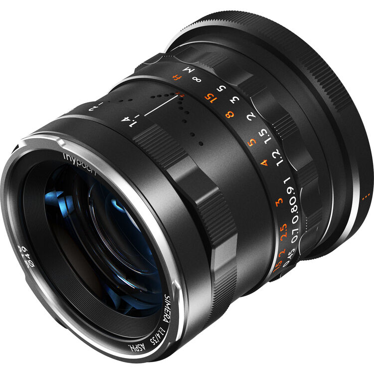 Designed in homage to the legendary Kern Macro-Switar lens for Alpa 35mm cameras, the black Sony E-mount Thypoch Simera 35mm f/1.4 Lens has bright, low-light friendly optics in a sleek aluminum housing for high-quality imagery in a wide range of shooting scenarios. Its large aperture enhances depth of field effects including bokeh and subject-background separation. Featuring a declickable aperture ring and a grooved focus tab, the manual focus design is both tactile and wieldy. The optical design features three high-refractive index elements and an aspherical element for clarity from the center to the edge of the frame.