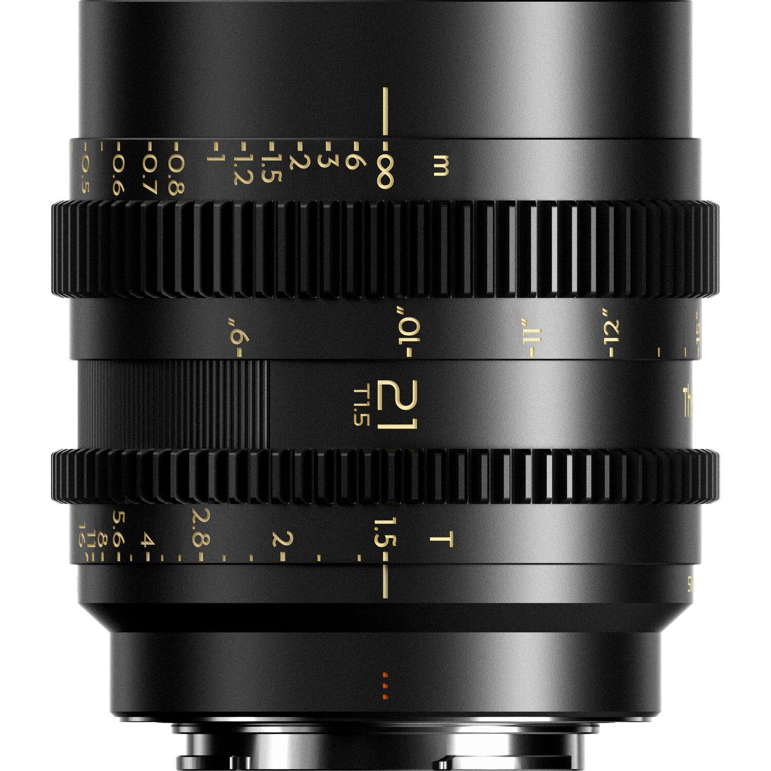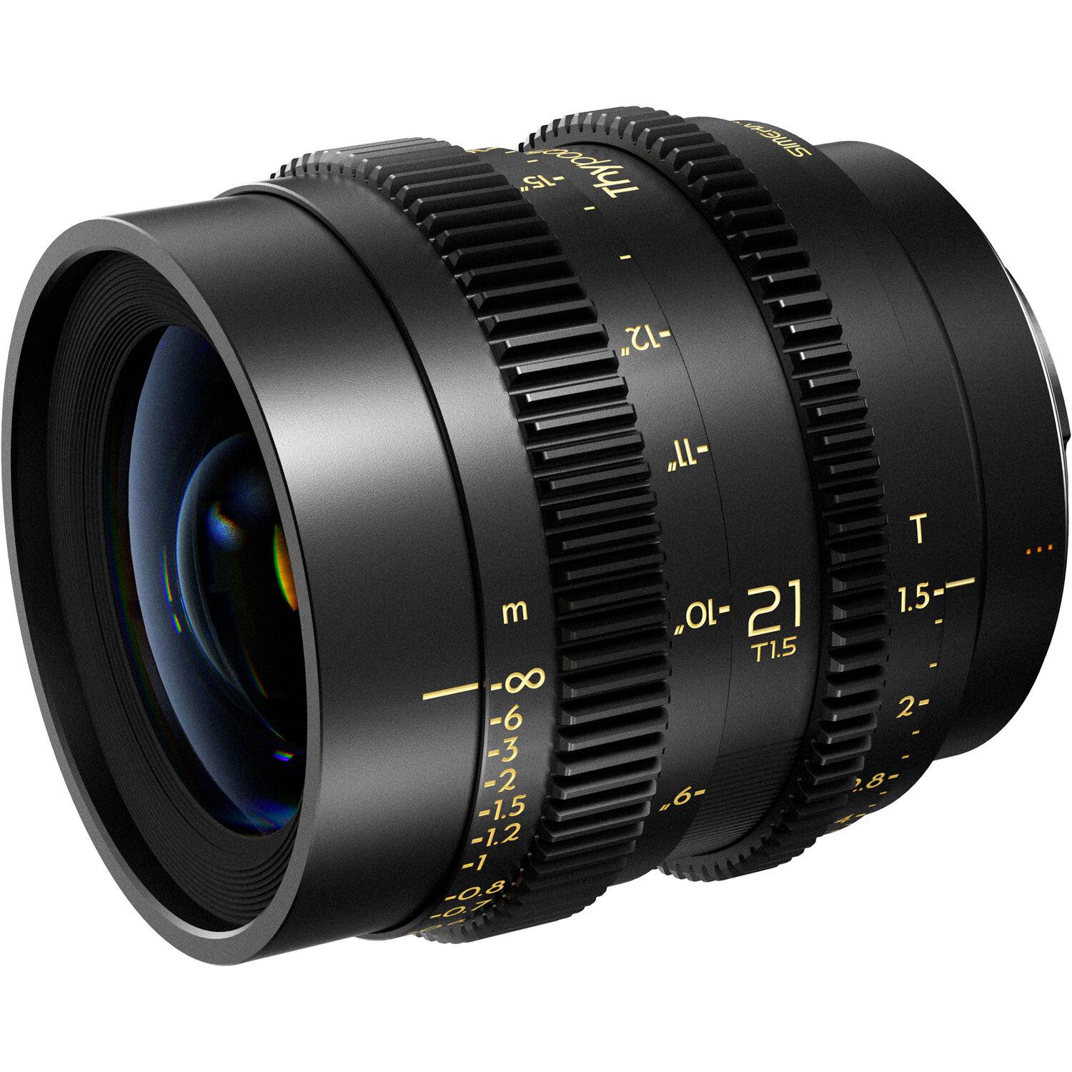 A cinema prime lens designed for full-frame E-mount cameras, the Simera-C 21mm T1.5 Cine Lens from Thypoch pairs a wide perspective with a bright T1.5 maximum aperture that excels even in unfavorable lighting conditions. Its ultracompact design allows easier capture from more challenging angles, such as low shots, over-the-shoulder perspectives, and tight spaces. Its 16-blade diaphragm creates flattering bokeh and works together with the constant T1.5 aperture to create a noticeable separation between your subject and background. The optical design incorporates aspherical, low-dispersion (LD), and high-refractive (HR) lens elements for high resolution and reduced chromatic aberrations. Additionally, the lens's multilayer coating minimizes flares and ghosting and improves the contrast in your images.