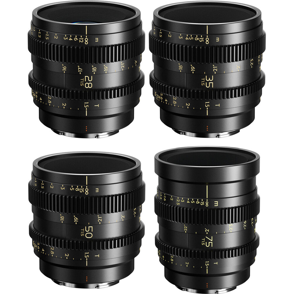 Add a full set of prime cine lenses to your kit with the Simera-C Cine 4-Lens Kit from Thypoch. The kit includes Simera-C 28, 35, 50, and 75mm lenses with a Sony E mount, as well as lens caps, shims, screws, and a screwdriver for adjusting the shims.