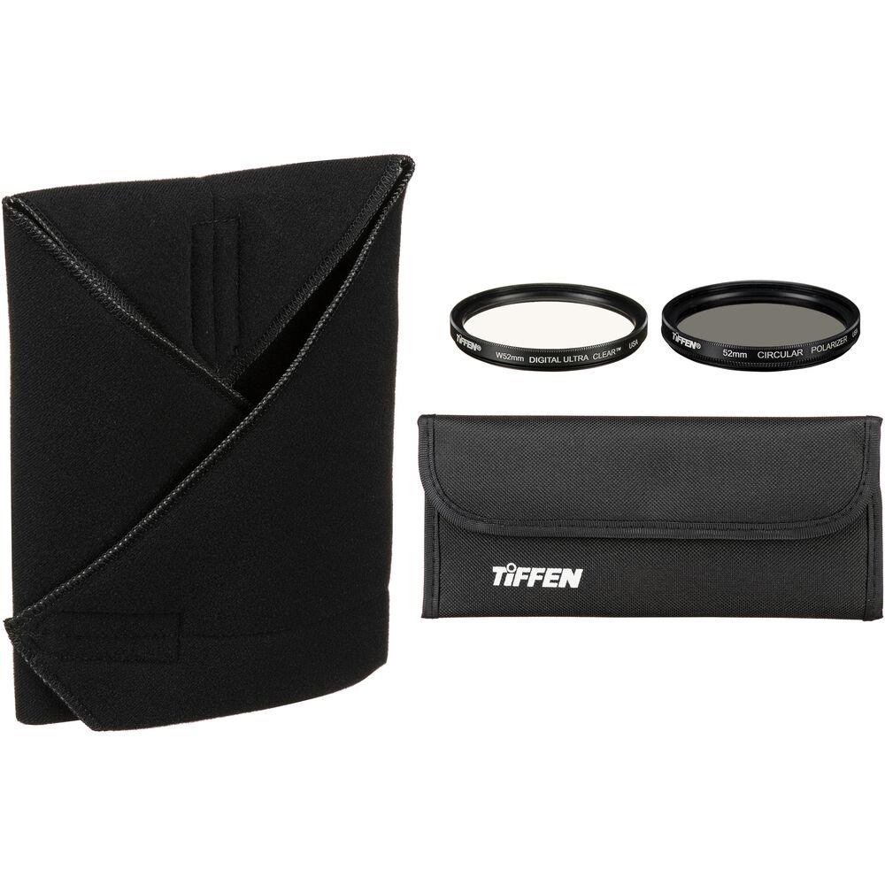 Comprising a pair of useful filters for general outdoor shooting applications, the 52mm Ultra Clear and Circular Polarizer Filter Kit from Tiffen bundles a protective Digital Ultra Clear filter and Circular Polarizer filter with a protective filter pouch for carrying and protecting your filters.
