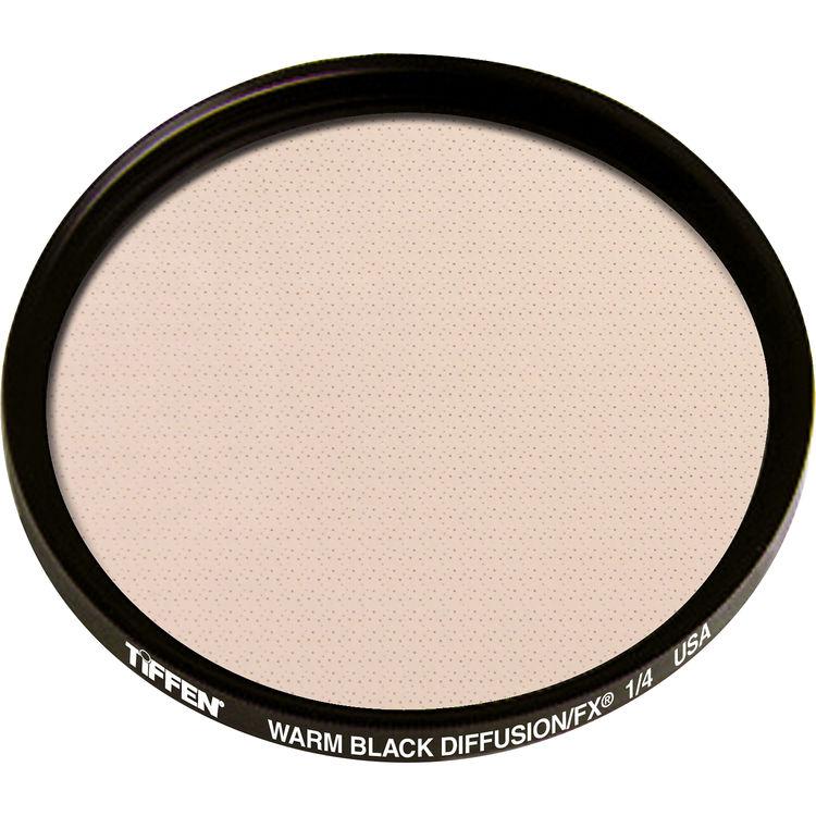 The Tiffen 72mm Warm Black Diffusion/FX 1/4 Filter diffuses strong light entering the lens and produces a glowing effect. While the resulting image appears softer and ethereal, there is little loss of clarity or detail. This filter works by diffusing the light entering the lens with small aberrations; by spreading the light more evenly, a soft glow is created rather than the sharp, well-defined image when shooting without a filter. In addition to the diffusion provided, a warming effect is also integrated into the filter helping to further balance skin tones. This filter has a 1/4 density, providing a very subtle amount of softening.