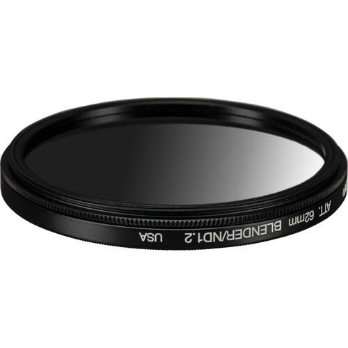 This 4-stop, 62mm Graduated Neutral Density Attenuator/Blender Filter from Tiffen is densest at one edge where it corresponds to a reduction of light entering a lens by 4 stops and tapers to clear at the other edge. Its gradation can be used to selectively darken an image from edge to edge, allowing for wider apertures or reduced shutter speeds. While this graduated attenuator/blender's 1.2 density can be applied to bright skies, the remaining regions of the image are exposed with a progressively decreasing effect.