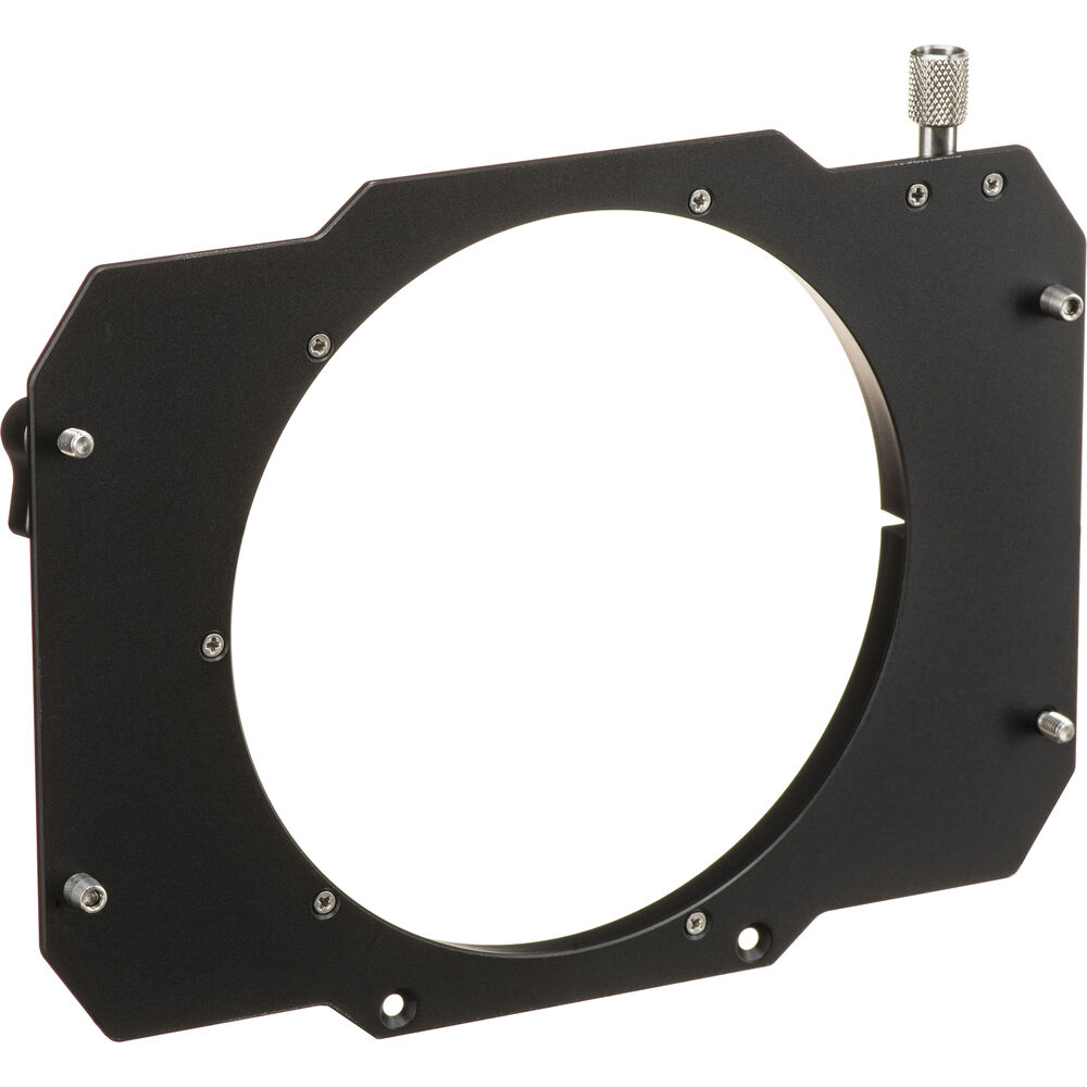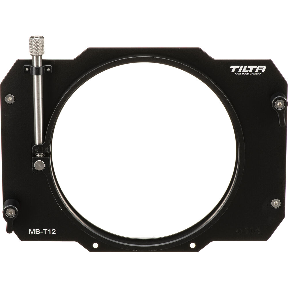 The 114mm Clamp-On Adapter for MB-T12 Matte Box from Tilta is used to attach the matte box to a lens with a 114mm front diameter. The adapter attaches to the lightweight 4 x 5.65" matte box via keyhole slots and fastens to the lens using a screw-on clamp.