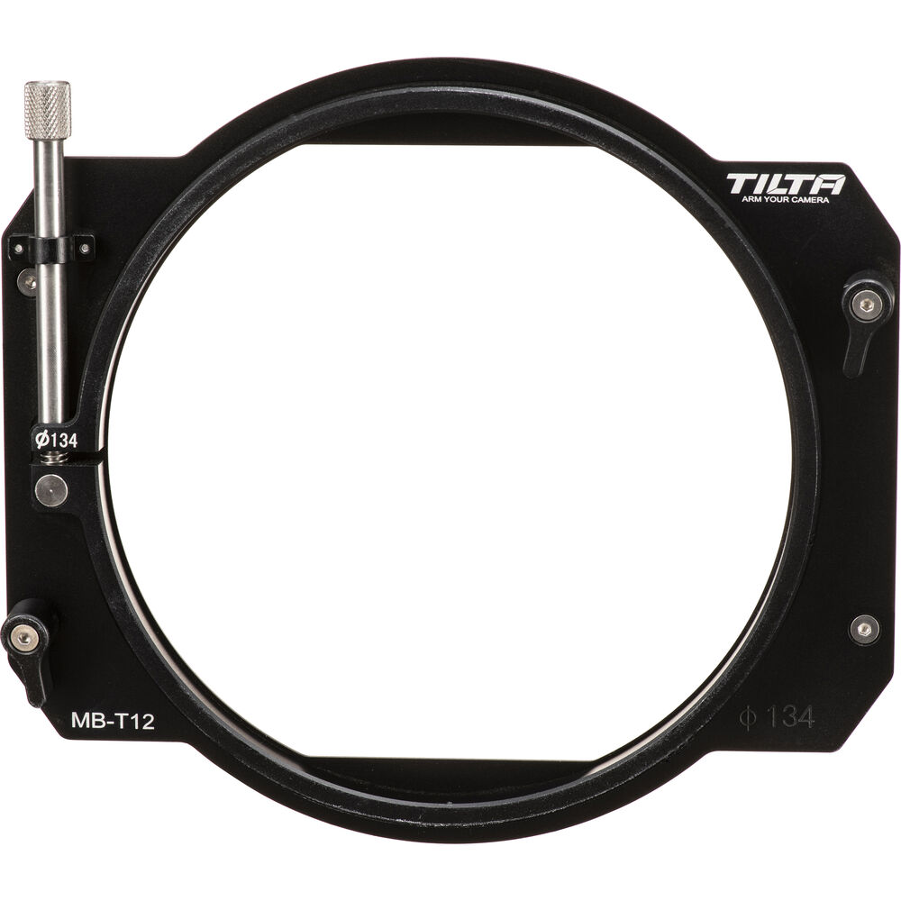 The 134mm Clamp-On Adapter for MB-T12 Matte Box from Tilta is used to attach the matte box to a lens with a 134mm front diameter. The adapter attaches to the lightweight 4 x 5.65" matte box via keyhole slots and fastens to the lens using a screw-on clamp.