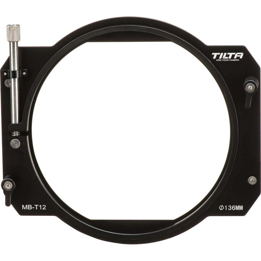 The 136mm Clamp-On Adapter for MB-T12 Matte Box from Tilta is used to attach the matte box to a lens with a 136mm front diameter. The adapter attaches to the lightweight 4 x 5.65" matte box via keyhole slots and fastens to the lens using a screw-on clamp.