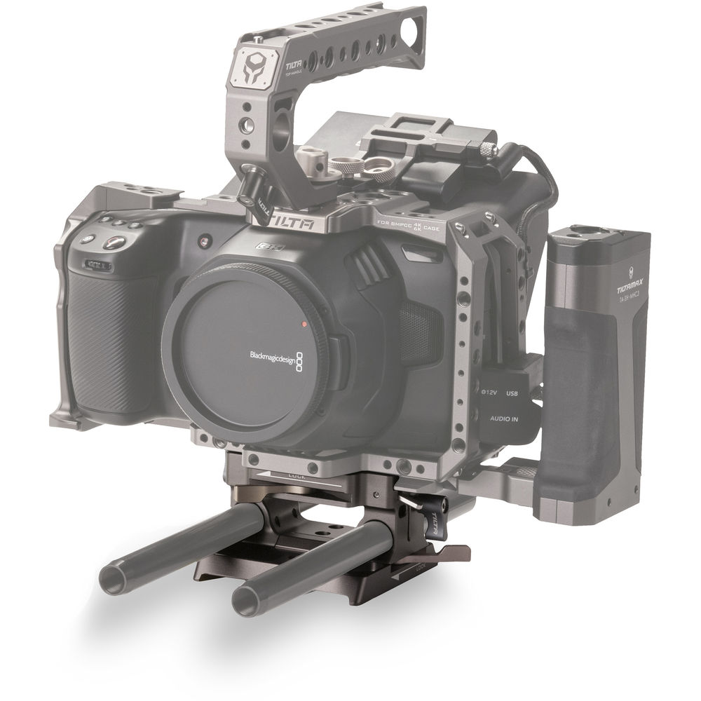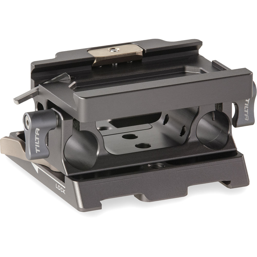 Featuring a Tilta gray finish, the Tiltaing 15mm LWS Baseplate Type I is designed to work with the Tiltaing half and full cages for the BMPCC 4K/6K and Z Cam. The baseplate features integrated 15mm LWS rod clamps with spring-loaded locking levers that allow you to lock or loosen the clamps, even when you can't rotate the levers a full 360°. The bottom of the baseplate is compatible with standard Tilta dovetails.