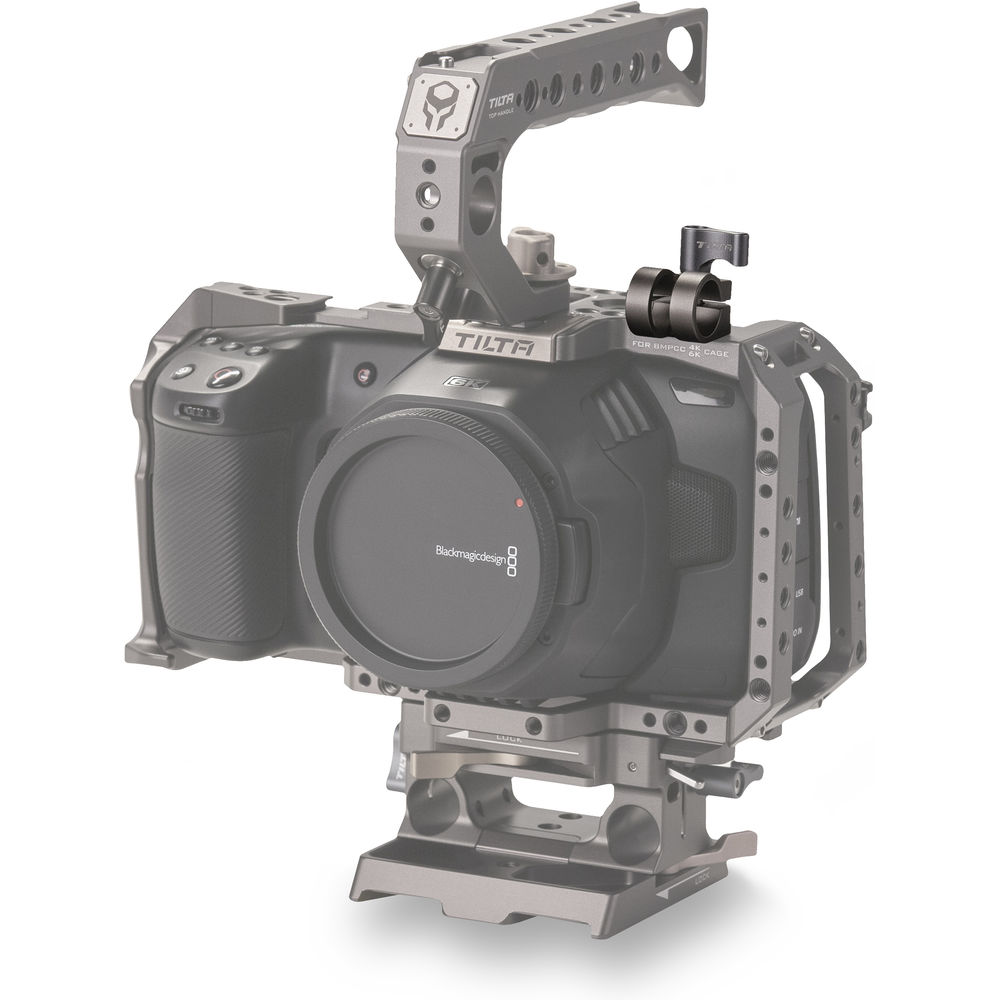 Add an accessory to the top of your Tilta full or half cage with this Tilta gray 15mm Single Rod Holder. The aluminum and stainless steel holder attaches to the top of the cage using the included thumbscrew and holds a single, separately available 15mm rod to add additional accessories to your rig.