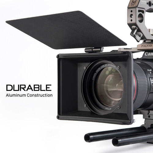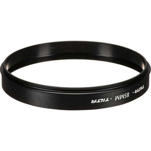 This Tilta 85mm Adapter Ring allows you to mount the Tilta Mini Clamp-On Matte Box on lenses that have a 85mm front diameter. The adapter ring screws onto the front of the lens, and the matte box then clamps onto the adapter ring. The thumbscrew on the side of the matte box is used to secure the matte box firmly to the adapter ring. The adapter ring also provides a thread for attaching 85mm screw-on filters to the lens. This is done right before mounting the matte box. After attaching the adapter ring to the lens, screw on the filter to the provided thread, and then attach the matte box. The adapter ring is made of aluminum and comes in black.