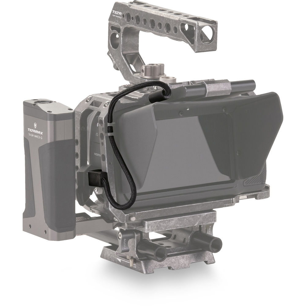 The 90° USB Type-C Cable for BMPCC 4K Cage from Tilta is 12" long and designed to closely fit your Blackmagic Pocket Cinema Camera 4K when mounted on its Tilta cage. Features include right-angle USB Type-C connectors with thumbscrew anchors on each end.