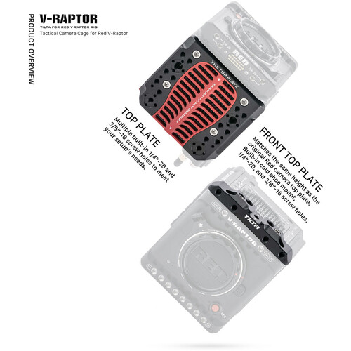 Exhaust vents at the center of the plate mimic the V-RAPTOR's integrated ventilation system to prevent the camera from overheating. The plate does not require a full cage installed on the camera.