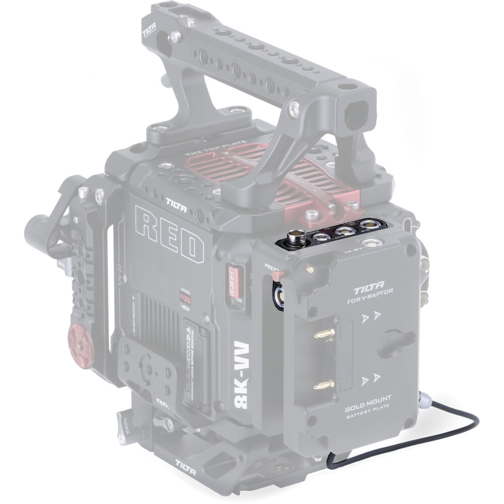 This Advanced I/O Module from Tilta expands the connectivity of your RED V-RAPTOR thanks to its various power, control, and video ports. An integrated extension cable connects to the camera body to increase functionality for run/stop and timecode via a 3-pin Fischer port and 5-pin port. Genlock video is available via a BNC connector.
