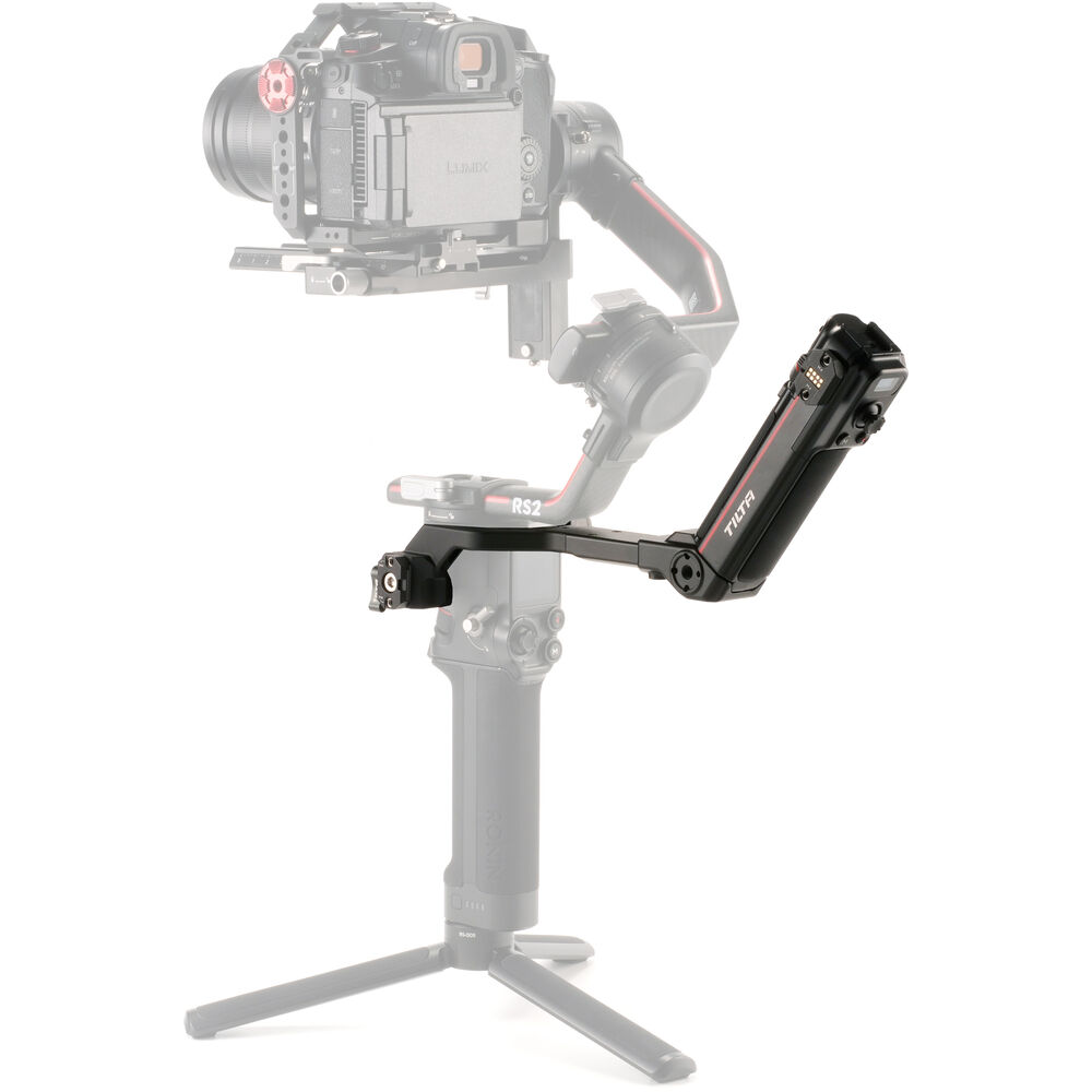 Add a second handle to your DJI RS 3 Pro or RS 2 gimbal that incorporates power output, gimbal movement, and camera control with this Advanced Rear Operating Control Handle from Tilta. This improved handle mounts onto the electronic NATO mounts on the side of the gimbal handle, and its adjustable arm facilitates two-handed operation for high-angle or low-angle shots. It has even more space than previous models between the handle and gimbal, which allows for easier rotation and movement of your camera on the gimbal.