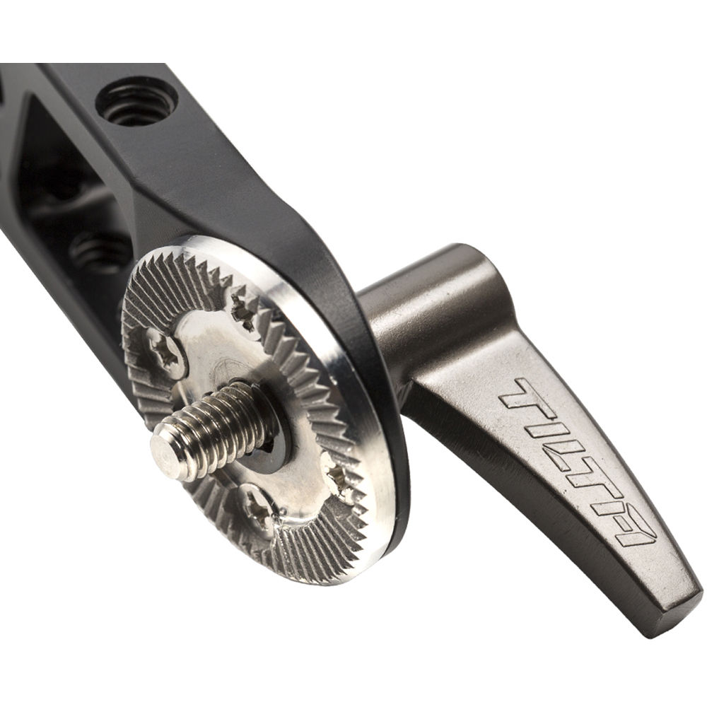 With its angled ARRI-standard rosettes, this pair of black Angled Handgrip Extension Arms from Tilta allows for more space and comfort while operating the separately available Tilta shoulder mount systems.