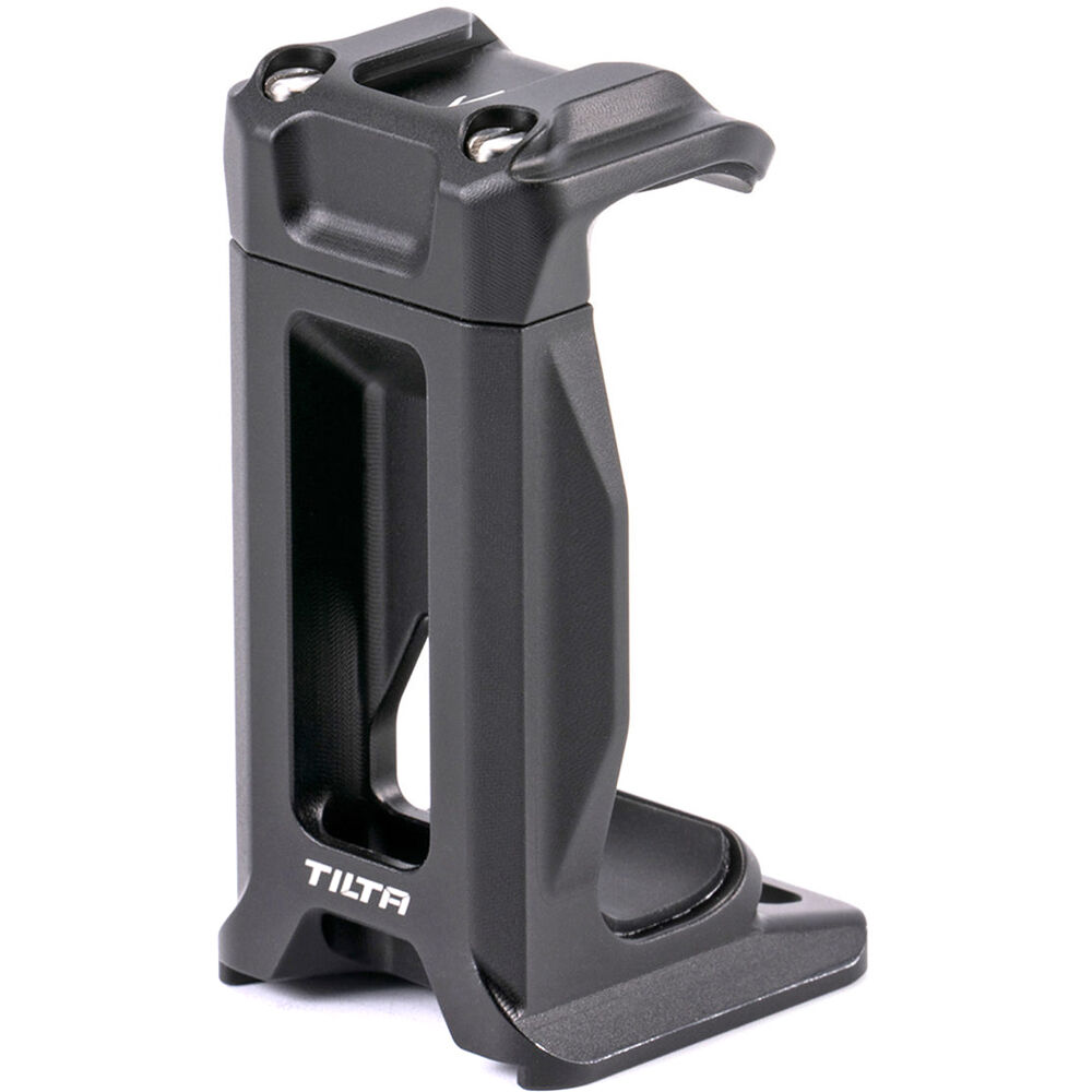 Mount your phone onto your DJI RS 3 or other DJI gimbal with this black Arca-Type Phone Mounting Bracket from Tilta. The durable aluminum bracket is designed to mount your smartphone directly onto your DJI gimbal that has an Arca-type receiver, such as the RS 3. It's height-adjustable to support most smartphone widths, and it provides tension-based tilt adjustment to let you set your phone to the desired angle on the fly without having to tighten any knobs.