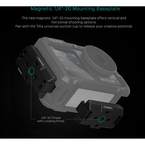 The titanium gray Basic Camera Cage Kit from Tilta offers 360° protection for your Osmo Action 3 camera while maintaining access to all ports and controls. The kit includes a formfitting full camera cage and a magnetic mounting baseplate.