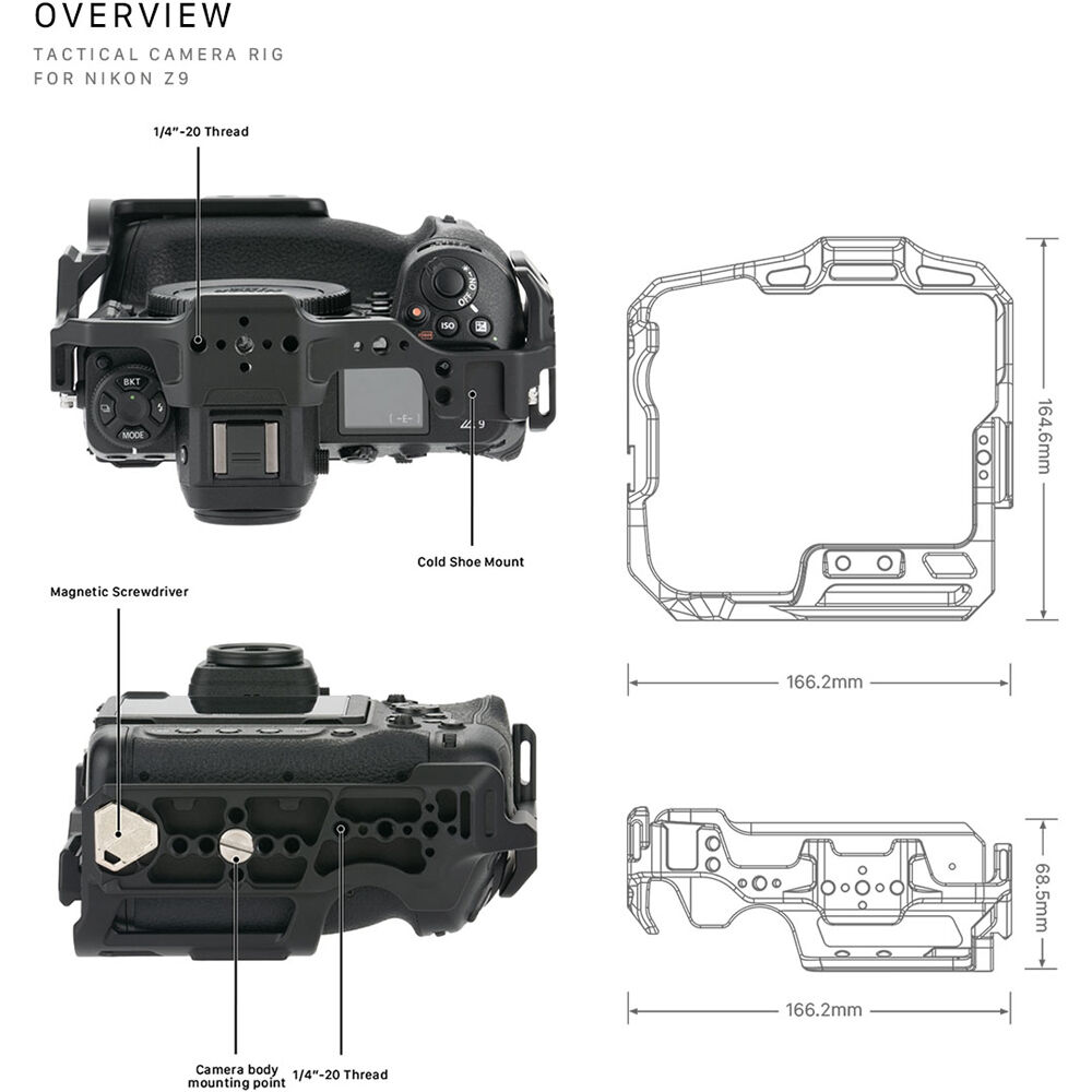 Protect your Nikon Z9 camera and add a variety of accessories with this black Basic Camera Cage Kit from Tilta. The kit includes a formfitting camera cage, a quick release top handle, and a 15mm LWS rod holder attachment.