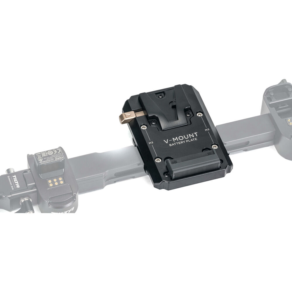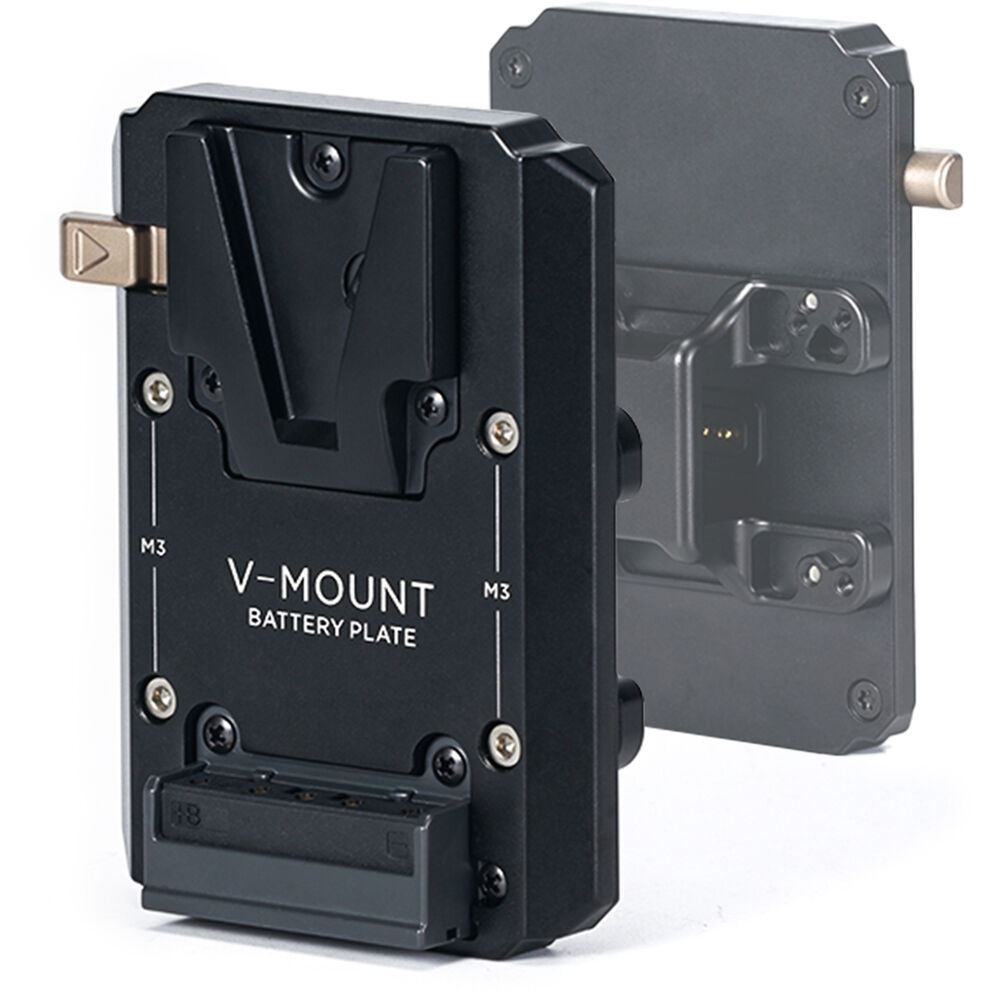 Power your DJI RS 2 gimbal and accessories using a high-capacity professional battery when it's mounted using the Dual-Handle Power Supply Bracket with this V-mount Battery Plate from Tilta. The aluminum and stainless steel battery plate accepts a single, separately available V-mount battery to power your camera, gimbal, and a variety of accessories. It mounts directly onto the Tilta Dual-Handle Power Supply Bracket. The plate has no power outputs so to power your gear, ensure that your battery has built-in power outputs such as D-Tap or USB.
