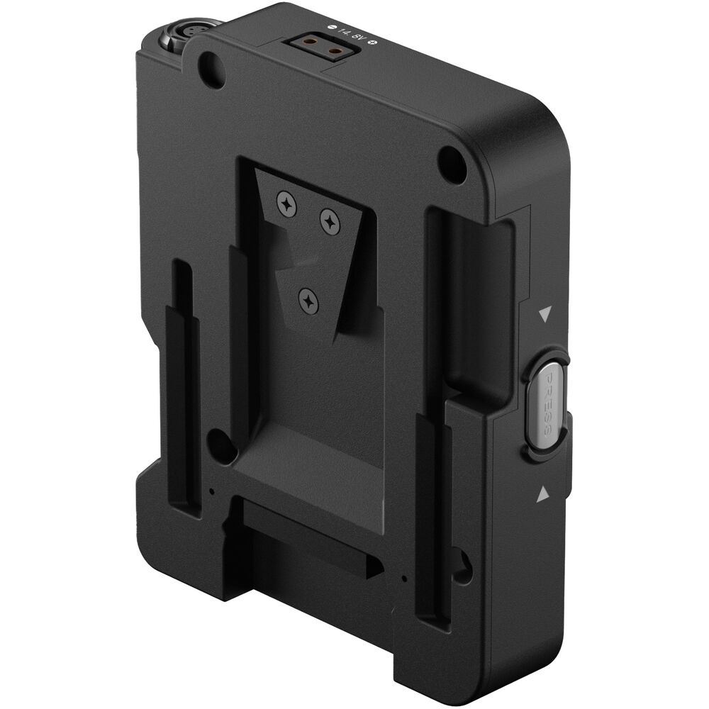 The plate passes through your battery's power to one 14.8V D-Tap output, one 14.8V 2-pin LEMO-type output, one 14.8V 3-pin Fischer run/stop output, and one 24V 3-pin Fischer output. The plate mounts directly onto your camera's rear.
