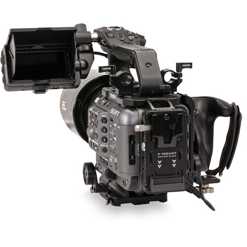Protect your FX6 camera while adding a V-mount battery plate and accessory mounting points, making your camera more shoot-friendly, with this Camera Cage for Sony FX6 with V-Mount Battery Plate from Tilta. This advanced kit provides a dovetail baseplate, a top accessory mounting plate, a side arm mounting plate for additional protection and accessory mounting, a right-angle mounting bracket well suited for wireless accessories, and a V-mount battery plate.