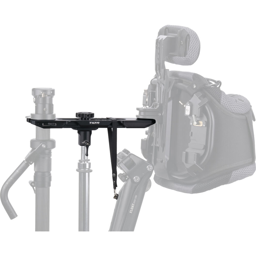 Secure your Tilta Float post, vest, and stabilizing arm to one Docking Station with this adjustable system, allowing you to more efficiently rest your gimbal without needing to take it apart. The center 5/8" baby pin is compatible with various stands and can be adjusted for optimal balance. One end of the dock fits the post and the other end has an adapter to fit the vest, as well as a place to attach the included lanyard and secure the gimbal arm. The bracket is constructed with aluminum alloy and stainless steel for a lightweight yet durable design.