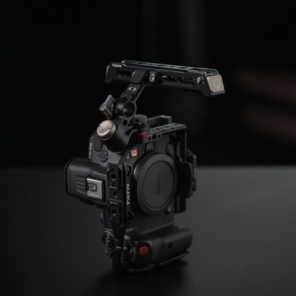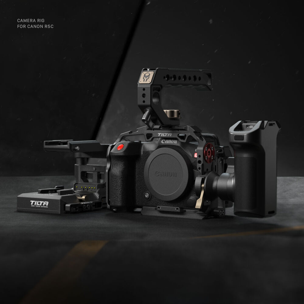 Attach this Tilta Full Camera Cage to your Canon EOS R5 C camera to expand its mounting options and protect the device. Multiple 1/4"-20 threads and three cold shoe mounts allow you to mount articulating arms and wireless microphones on the cage. Several M3 threads, two of which are at the front of the cage, can accept accessories such as the included EF lens mount adapter support.