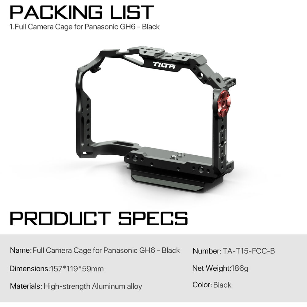This Full Camera Cage offers protective armor for the Panasonic Lumix GH6 while including a few necessary accessories that expand the functionality of the GH6. The cage features multiple cold shoe receivers, a rosette connection, and 1/4"-20 threads with and without locating pins. You will also find multiple NATO rail connections for mounting the included compact NATO top handle or any of the Type IV/VI side handles (available separately).