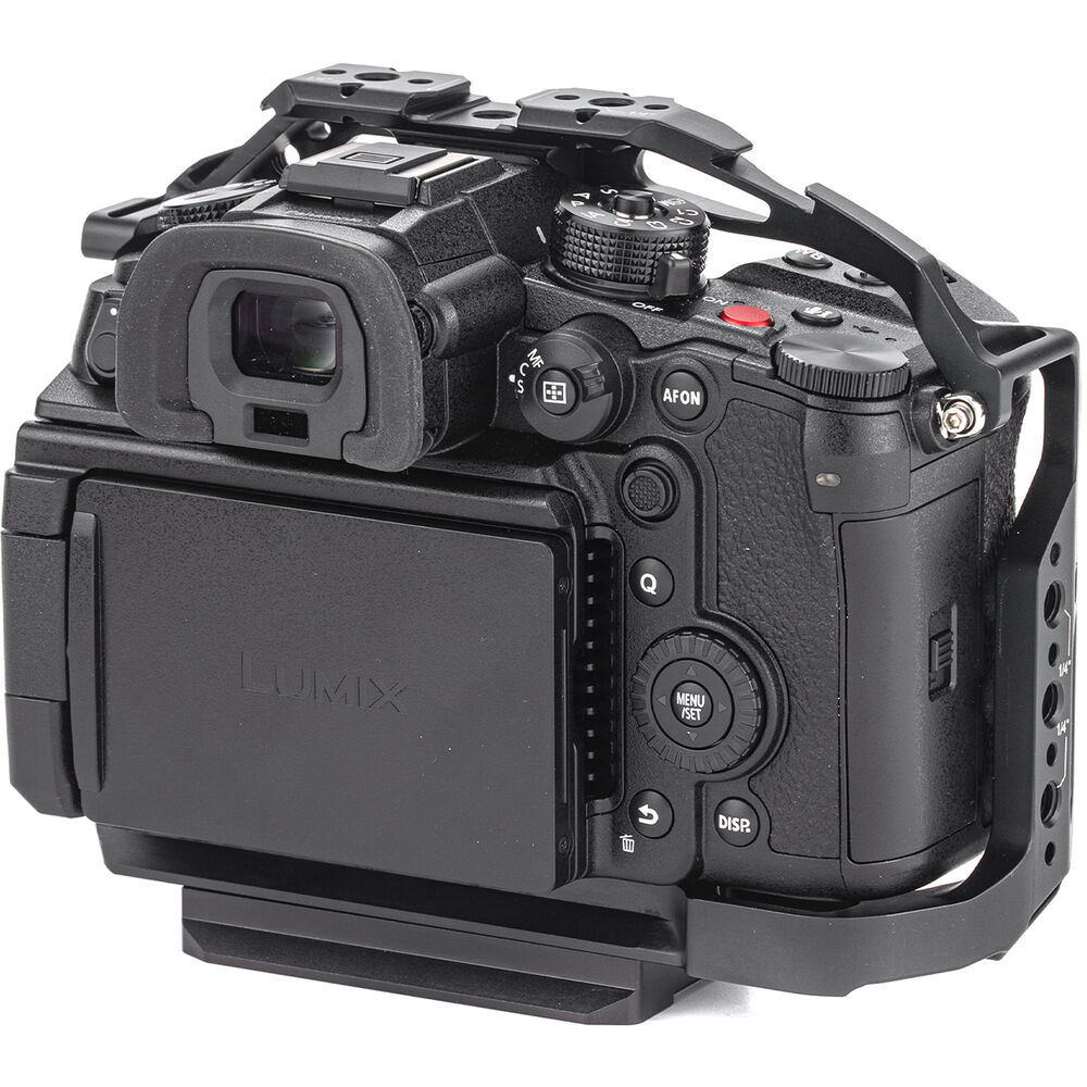 To build out your GH6 rig, lock it within the rock-solid skeletal core of the black Full Camera Cage for Panasonic GH6. Complete with 1/4"-20 threads, cold shoe mounts, a rosette mount, and a NATO rail design, this lightweight structure enables as much expandability as you can manage.