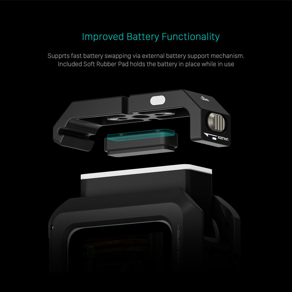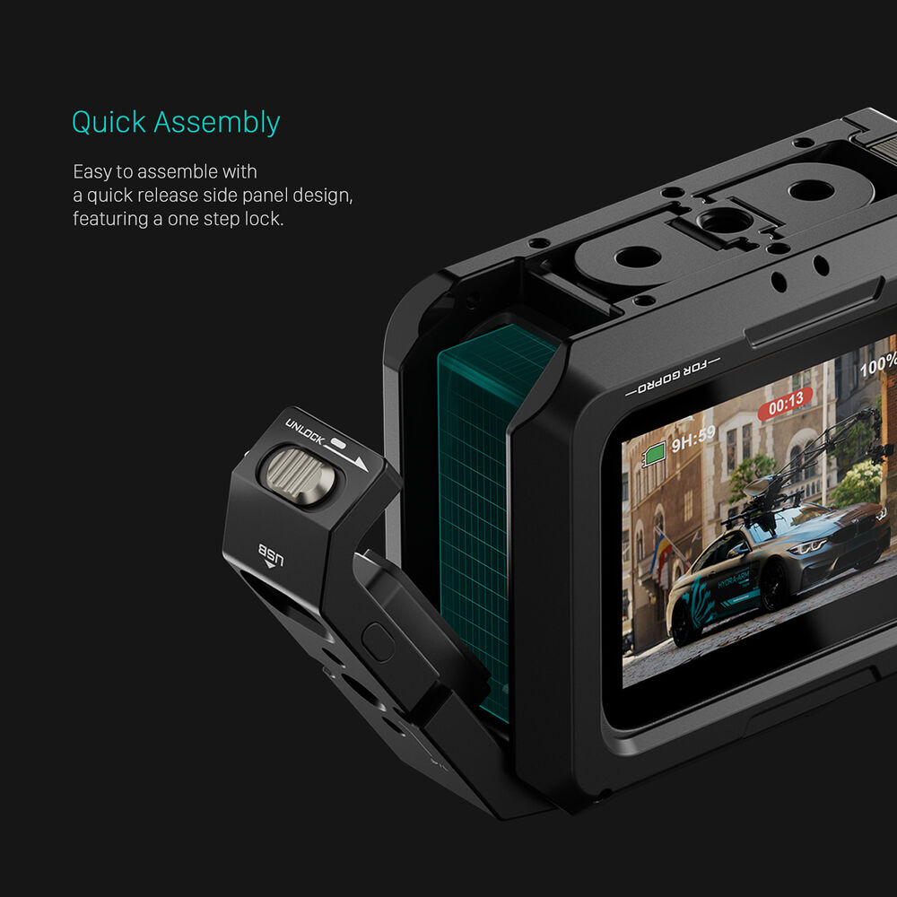 This pink Full Camera Cage from Tilta offers full, armored aluminum protection for your GoPro HERO11 action camera while maintaining access to all ports and controls. It can be assembled and removed quickly and used in either landscape or portrait mode.