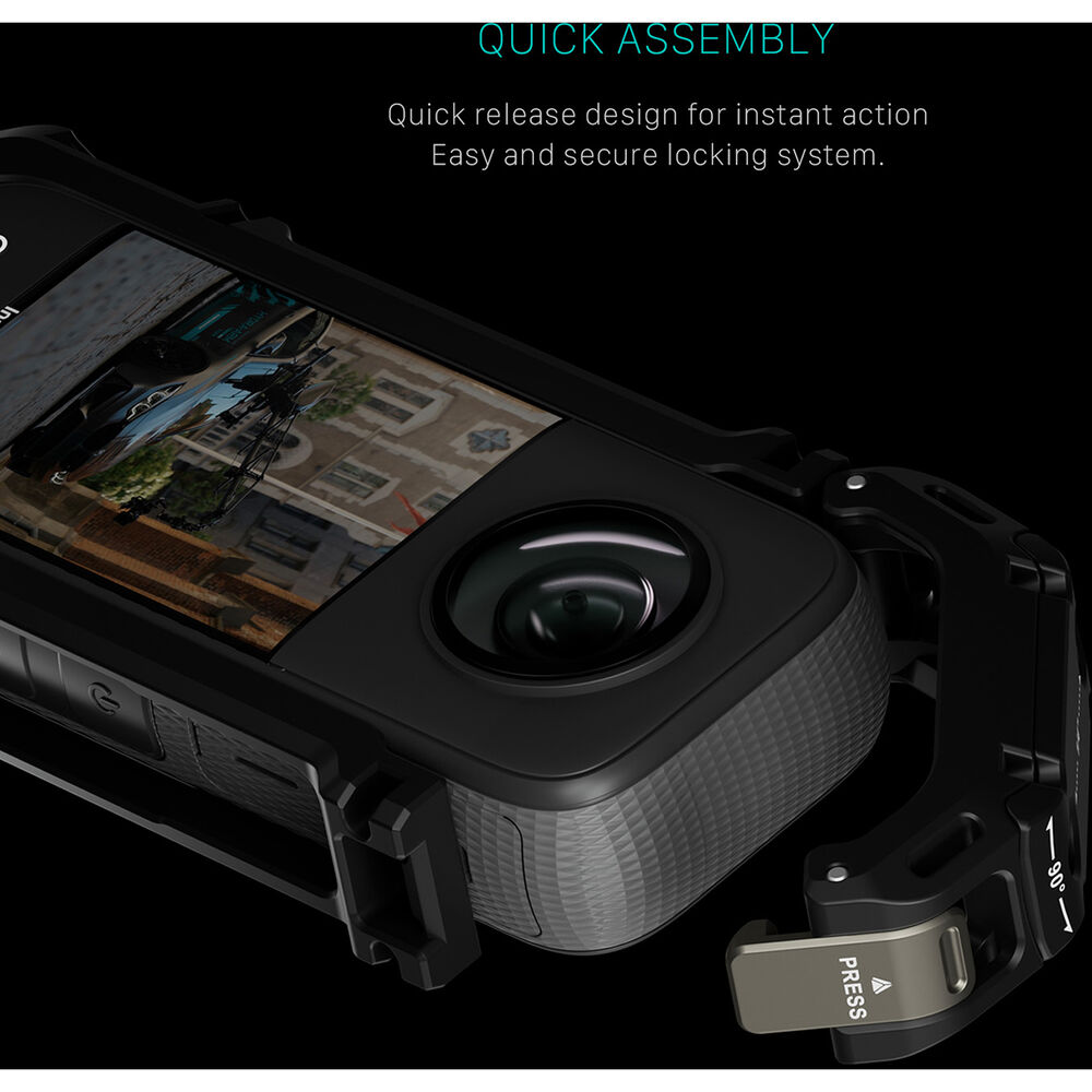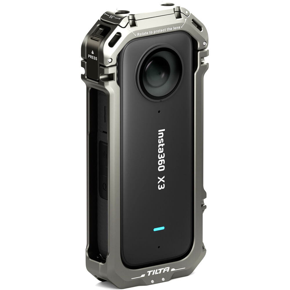 Protect your Insta360 ONE X3 action camera while maintaining access to its lens port, controls, and battery slot with this titanium gray Full Camera Cage from Tilta. The formfitting full-frame aluminum design protects your camera while adding accessory mounting options and leaving its controls easily accessible and viewable. Cushioning on the inside of the cage provides protection from scratching.