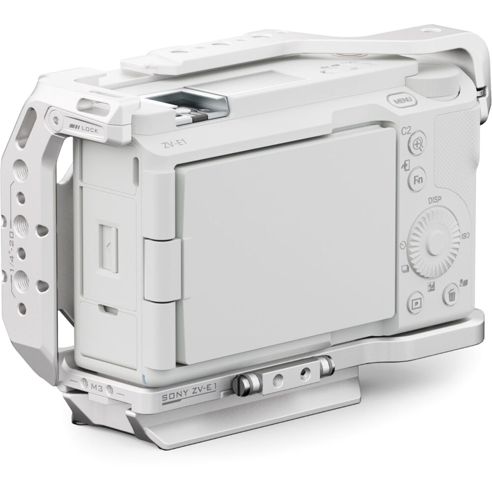 Designed to fit your Sony ZV-E1, this silver Tilta Full Camera Cage offers multiple mounting points, additional protection, and both portrait and landscape shooting, all in one cage design. Included with the cage is an Arca-type plate which can be attached to either the bottom or the side to support native switching between horizontal and vertical shooting orientations. The cage maintains access to the camera's ports and controls while adding multiple 1/4"-20 anti-twist threads throughout to attach additional accessories.