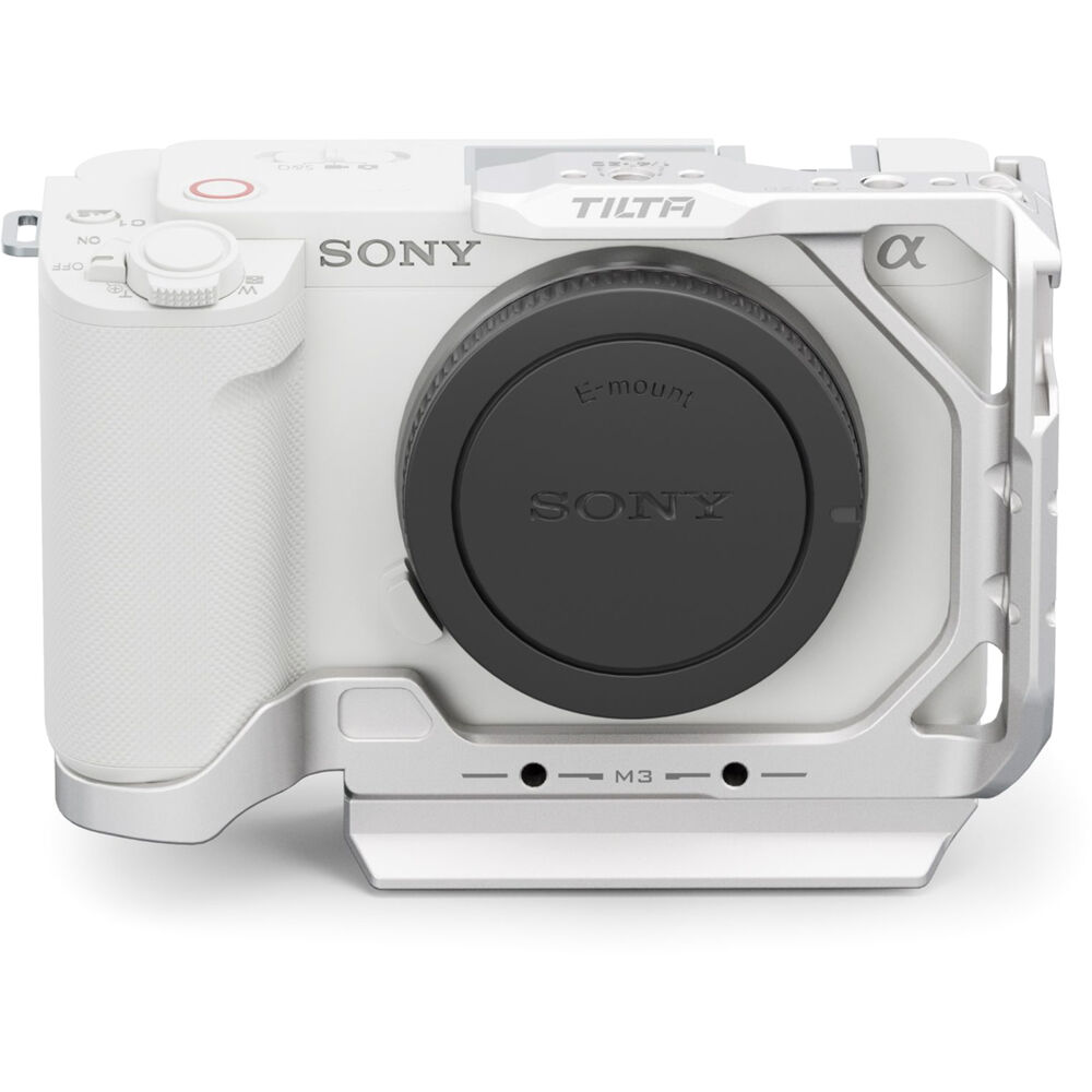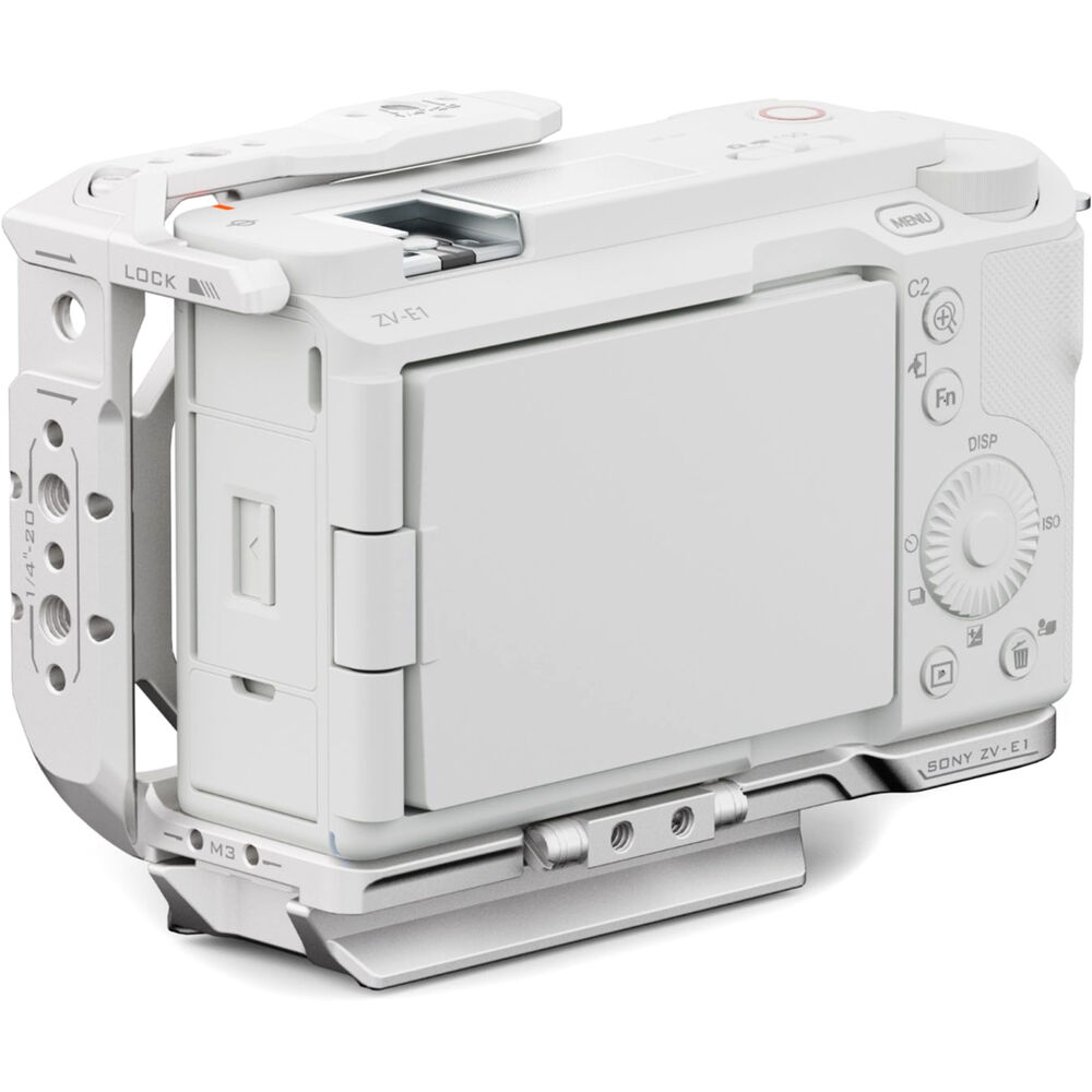 Designed to fit your Sony ZV-E1, this silver Tilta Half Camera Cage offers multiple mounting points, additional protection, and both portrait and landscape shooting, all in one cage design. Included with the cage is an Arca-type plate which can be attached to either the bottom or the side to support native switching between horizontal and vertical shooting orientations. The cage maintains access to the camera's ports and controls while adding multiple 1/4"-20 anti-twist threads throughout to attach additional accessories.