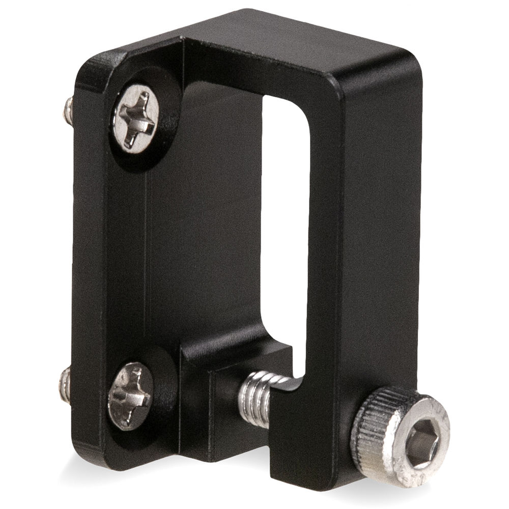 Secure your Sony a7 and a9 camera cables with this black HDMI Cable Clamp Attachment from Tilta when your camera is mounted on the Tiltaing Sony a7 and a9 camera cage. The aluminum clamp attaches to the cage using the included screws, the HDMI cable is threaded through, and then the clamp is tightened with a thumbscrew to prevent cable pulls or disconnects.