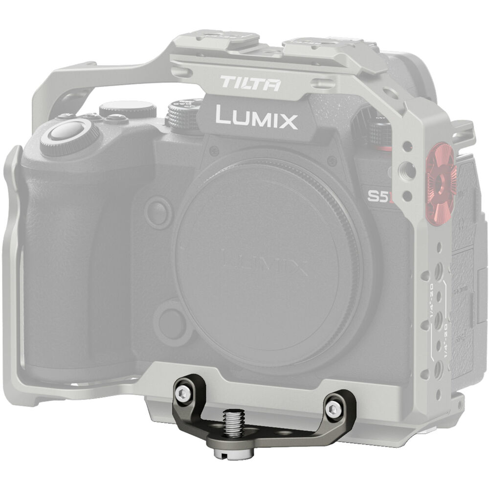 This titanium gray Lens Adapter Support from Tilta mounts on the front of your Tilta cage for Panasonic S5 II and S5 IIX cameras. Made from aluminum alloy and stainless steel, the support reduces stress on your camera lens mount and limits unwanted lens shifting. This adapter uses a 1/4"-20 screw to support various lens mount adapters.
