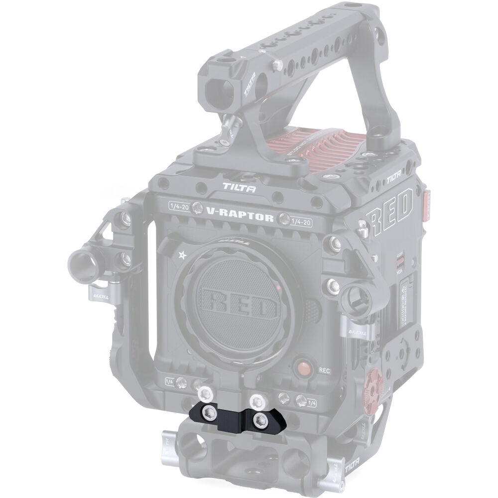 Use the Support Bracket for RED V-RAPTOR to provide additional security for a Tilta PL or LPL Lens Mount Adapter mounted on the full cage for the RED V-RAPTOR. This aluminum alloy component mounts on the cage using the included screws.