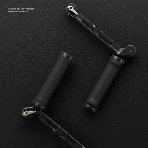 Comfortably support your RS 2, RSC 2, RS 3, or RS 3 Pro gimbal using both hands and the Dual-Handle Bracket for DJI Ronin from Tilta. Made of lightweight yet durable aluminum, each flexible handle features a rotatable folding design, a shoe mount, and anti-twist 1/4"-20 and 3/8"-16 accessory threads.