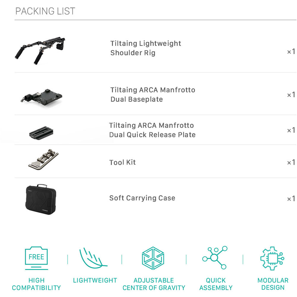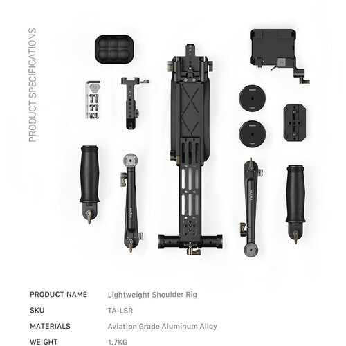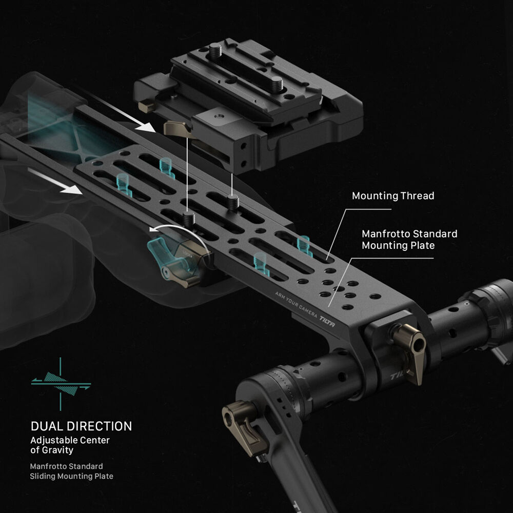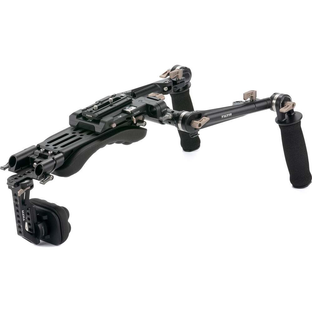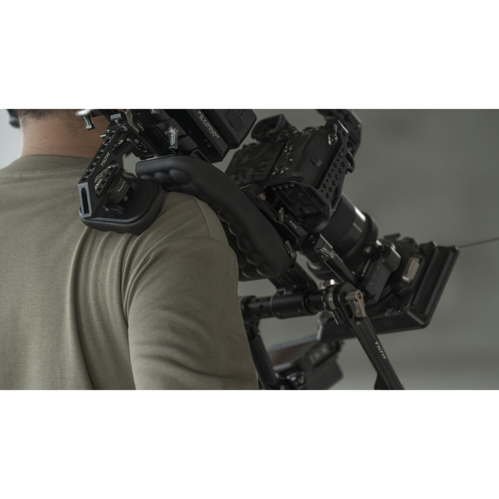 Shoot handheld, shoulder-mounted footage with your compact cinema camera or DSLR using this black Lightweight Shoulder Rig from Tilta. The shoulder rig includes all of the accessories you need to assemble a fully functional camera mount with customizable features. The entire system features dual Manfrotto and Arca-type plate compatibility for a wide range of supported recording devices.