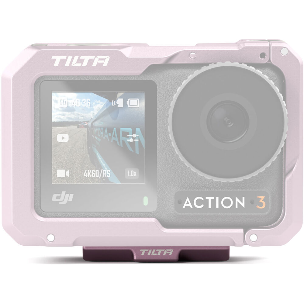 Mount your DJI Osmo Action series camera onto a rig or magic arm using this pink Magnetic 1/4"-20 Mounting Baseplate from Tilta. The plate attaches to the bottom of the Osmo Action using a magnet, and the camera can then be quickly mounted and unmounted from the baseplate. The bottom of the mount features an anti-twist 1/4"-20 thread to mount onto an optional magic arm, rig, or accessory.