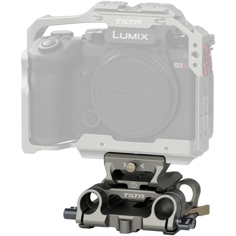 Add this titanium gray Modular 15mm LWS Baseplate Type I from Tilta to your camera rig configuration and achieve the proper height for rod-based lens accessories. It comes with a detachable Arca-type receiver to efficiently switch between tripod and DJI Ronin S series gimbal. Two 15mm LWS rod clamps can incorporate follow focus motors or a matte box into your camera setup.