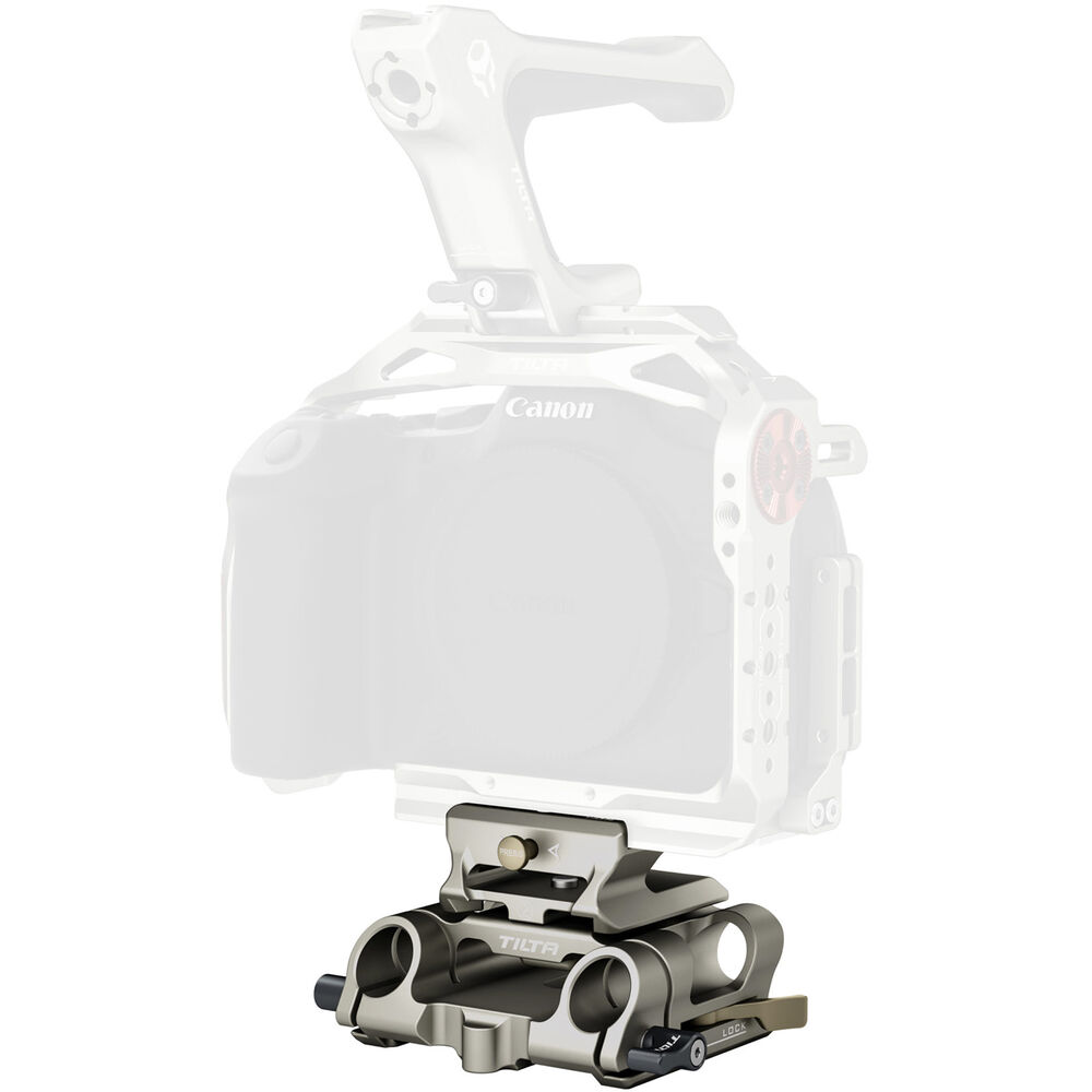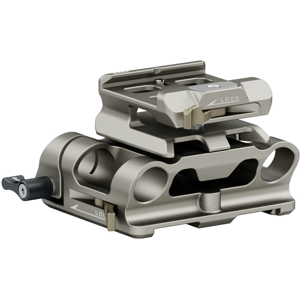 The gray Modular 15mm LWS Baseplate Type III from Tilta provides quick switching between handheld use and baseplate support for your Ronin-S series or similar gimbal. This baseplate's integrated 15mm LWS rod clamps enable you to mount rod-based accessories like a matte box or lens motors. This modular baseplate features a detachable Arca-style receiver and a bottom that is compatible with Tilta-standard dovetails.