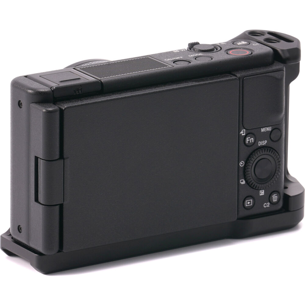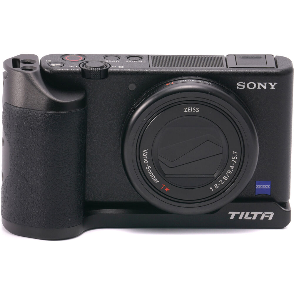 Designed specifically for the Sony ZV-1, ZV-1F, and ZV-1M2, the Tilta Mounting Baseplate with Grip enhances the functionality of your camera with its multiple accessory mounting points, wrist strap slot, improved handling, and built-in cold shoe mount. Crafted from aluminum alloy, it weighs a mere 2.9 ounces and integrates seamlessly into the profile of your camera. The anti-slip rubber pad ensures a secure fit.