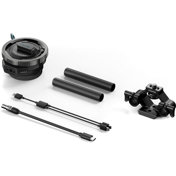 Use Sony's autofocus system with high-end or vintage PL-mount lenses on your FX3, FX30, or FX6 cinema camera with the Nucleus Autofocus Adapter Base Kit from Tilta. This kit includes a Sony E to ARRI PL-mount lens autofocus adapter, a 15mm rod adapter, two 15mm rods, a USB-C to 7-pin LEMO-type power cable, and a USB-C dual-motor Y-cable.