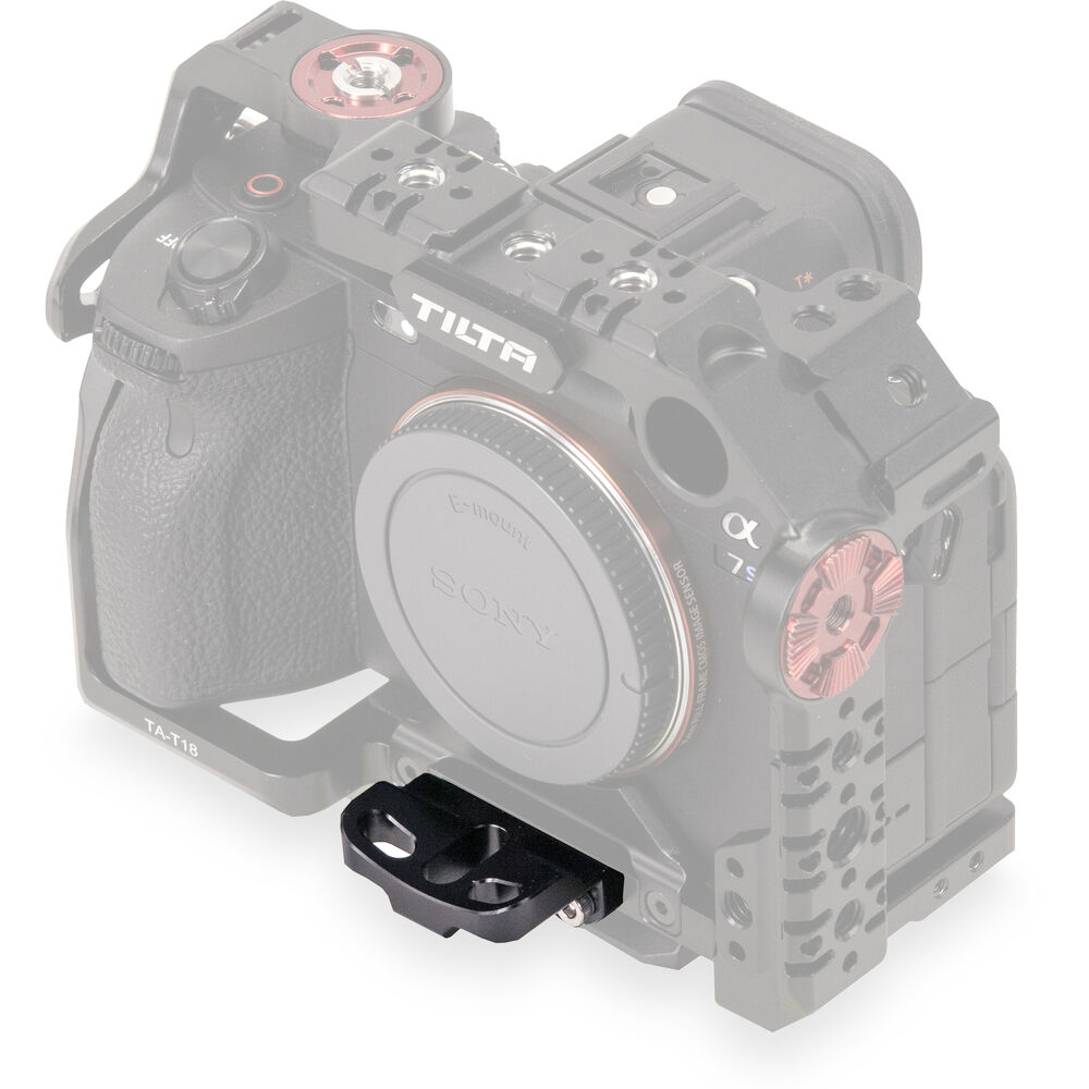 Add a support for your PL lens adapter when mounting it on a Tiltaing cage protected Sony a7S III with this PL Mount Lens Adapter Support for Sony a7S III, in a black finish, from Tilta. The adapter support mounts on the front of full or half a7S III Tiltaing cages (not included) using the included mounting screws to keep the weight of your adapter and lens from stressing your camera's lens mount. Aluminum and steel construction keeps this both lightweight and strong, while the black finish helps protect from corrosion.