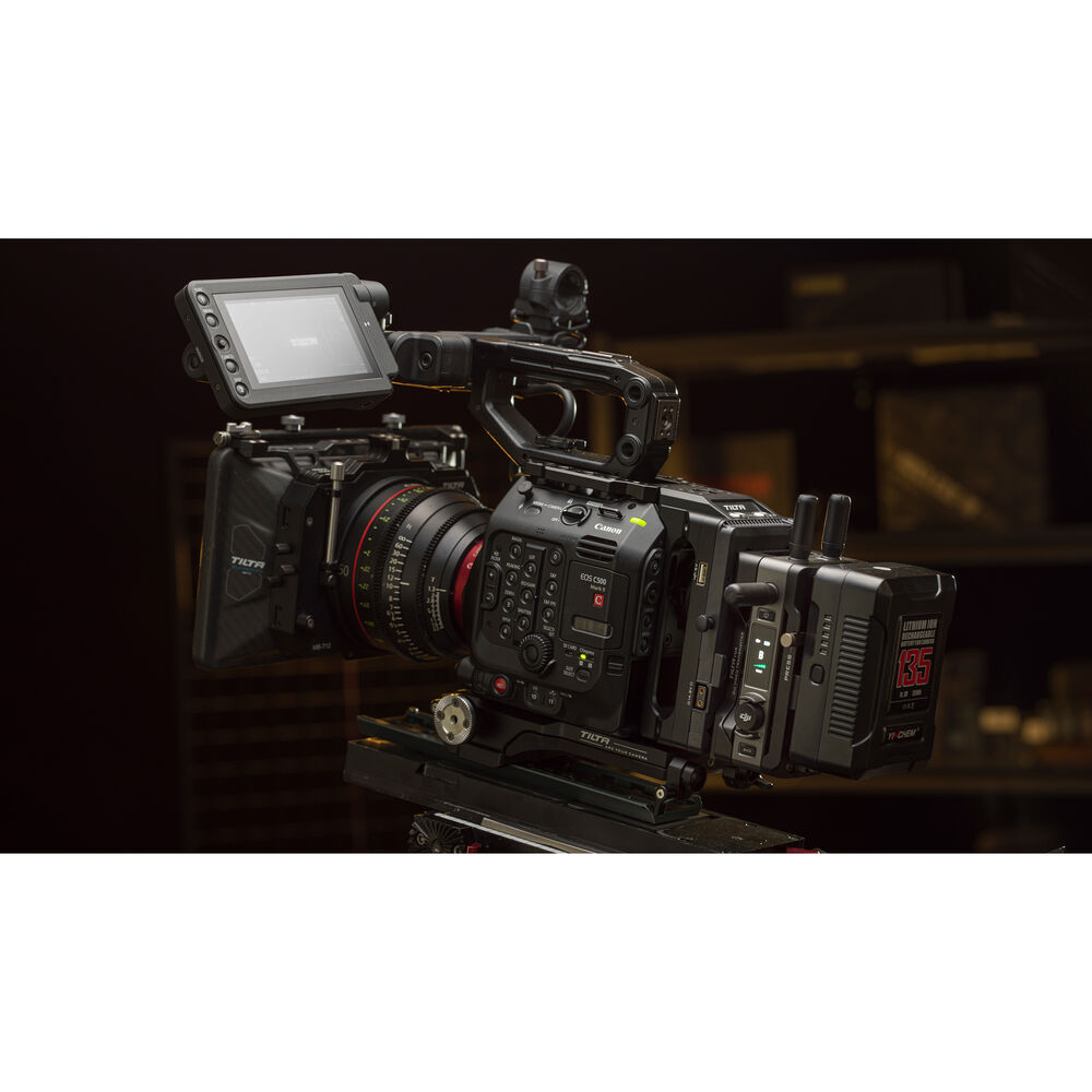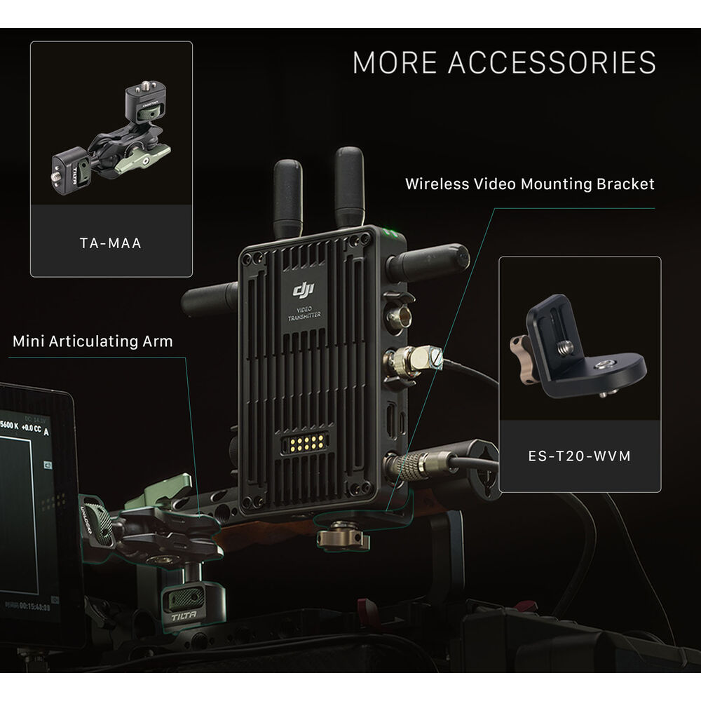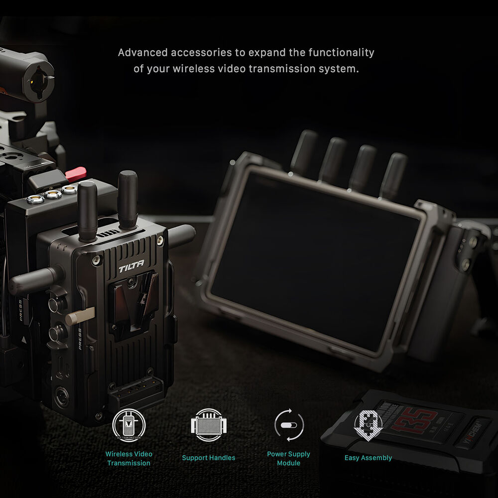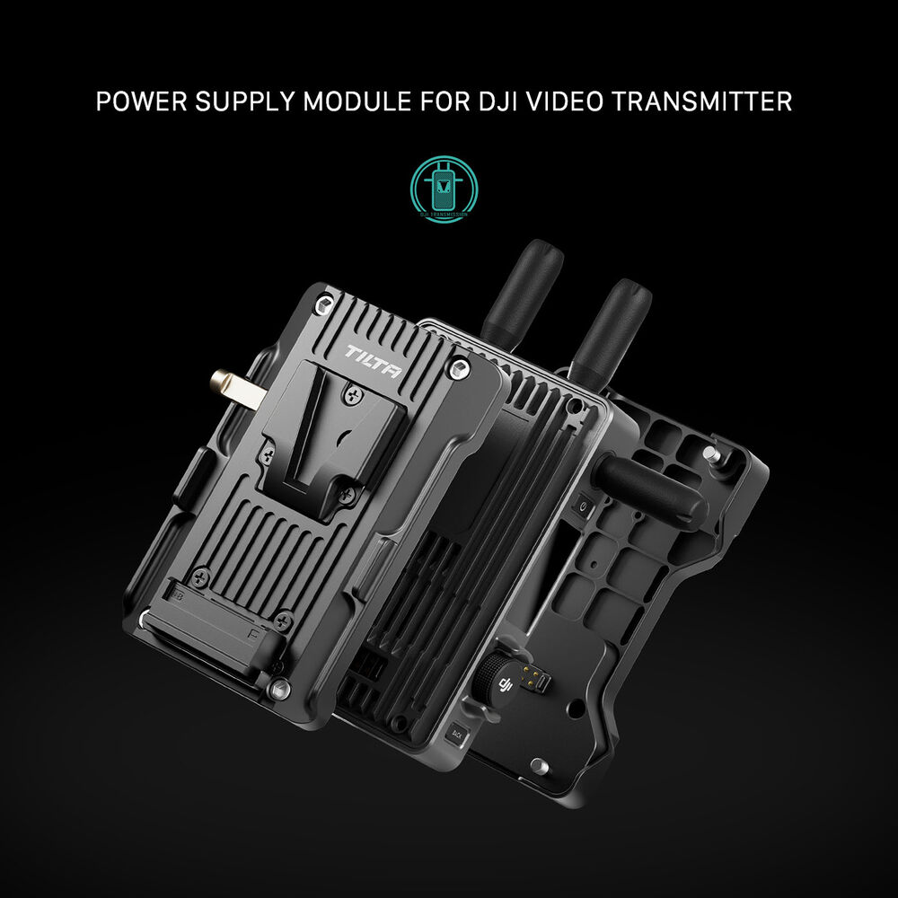 Power your DJI Video Transmitter along with your camera with this Gold mount to V-mount Power Supply Module from Tilta. The power module consists of a Gold mount battery plate and a V-mount camera-side plate that mount on either side of the DJI Video Transmitter. The V-mount camera-side plate mounts quickly onto the camera, and the Gold mount battery plate provides the ability to power the transmitter and the camera simultaneously with a long-lasting, separately available Gold mount battery.