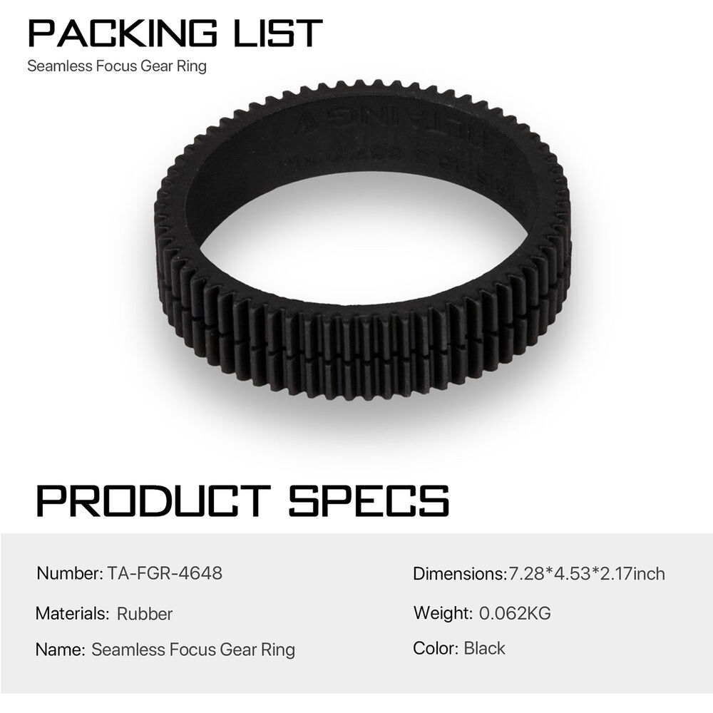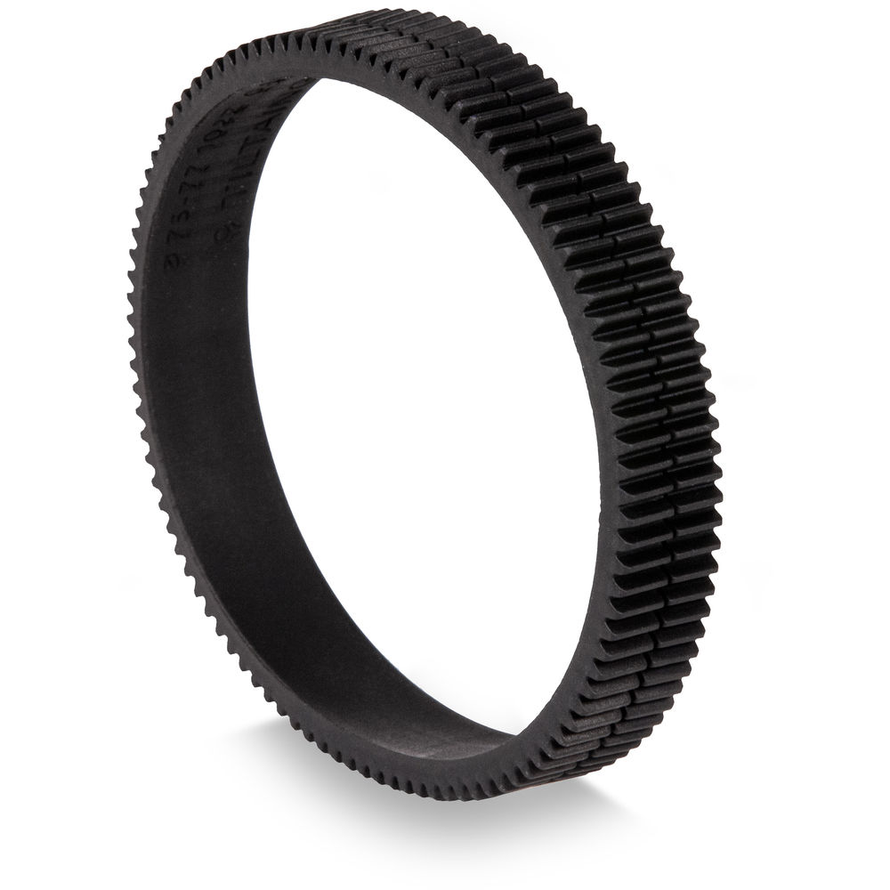 Tilta's 46.5 to 48.5mm Seamless Focus Gear Ring allows you to add 0.8 MOD gears to a compatible lens for use with cine follow focuses. This 46.5 to 48.5mm size fits virtually all lenses of the same outer diameter. The seamless version is designed with an improvement over Tilta's earlier gear rings in that it's fully closed and requires no screws in order to be secured to the lens. As a result, it attaches to the lens more easily and provides evenly distributed pressure while ensuring zero drifting and accurate focus. It's made of durable, flexible rubber, attaches firmly, and works silent and smooth along 360° of rotation. The MOD rating and 46.5 to 48.5mm diameter size are etched out on the inside of the ring.